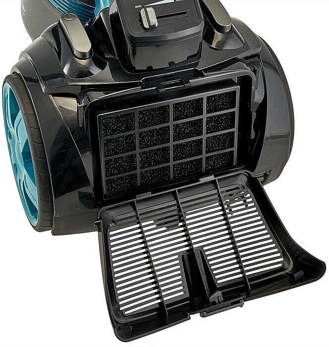 Максимальная мощность 2200 Вт Номинальная потребляемая мощность 1400 Вт Мощность всасывания 350 Вт Объём контейнера для сбора пыли 4 л Уровень шума ≤ 85 дБ Длина шнура питания 5 м Описание Пылесос электрический предназначен для сухой уборки помещений, чистки одежды, ковров и мягкой мебели, а также для других работ, связанных с использованием разрежения воздуха в бытовых и аналогичных им условиях Цвет: черный с бирюзовым Система «Мультициклон», обеспечивающая эффективную уборку без использования мешка для сбора пыли Съемный чистящийся HEPA-фильтр Многоуровневая система фильтрации Регулятор потока воздуха на ручке Металлическая телескопическая труба Вертикальная парковка трубы всасывания на корпусе Шланг с ручкой Насадка «ковер-пол» Дополнительная комбинированная щелевая насадка Удобная ручка для переноски Автоматическое сматывание шнура питания Защита от перегрева