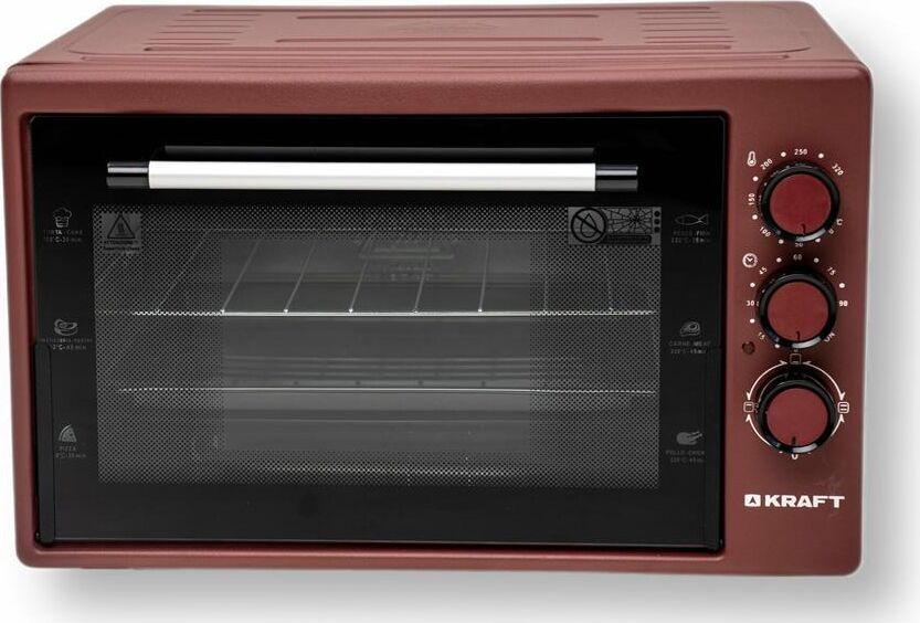 (ВхШхГ)54х44,5х40,5см.Электрическая духовка 38л.Цвет красный.Верхний ТЭН,нижний ТЭН,верхний +нижний ТЭН.Мощность 1500Вт.Кол.режимов 3.Макс.t320. Комплектация решетка,противень для выпечки.Таймер отключения 90м.
