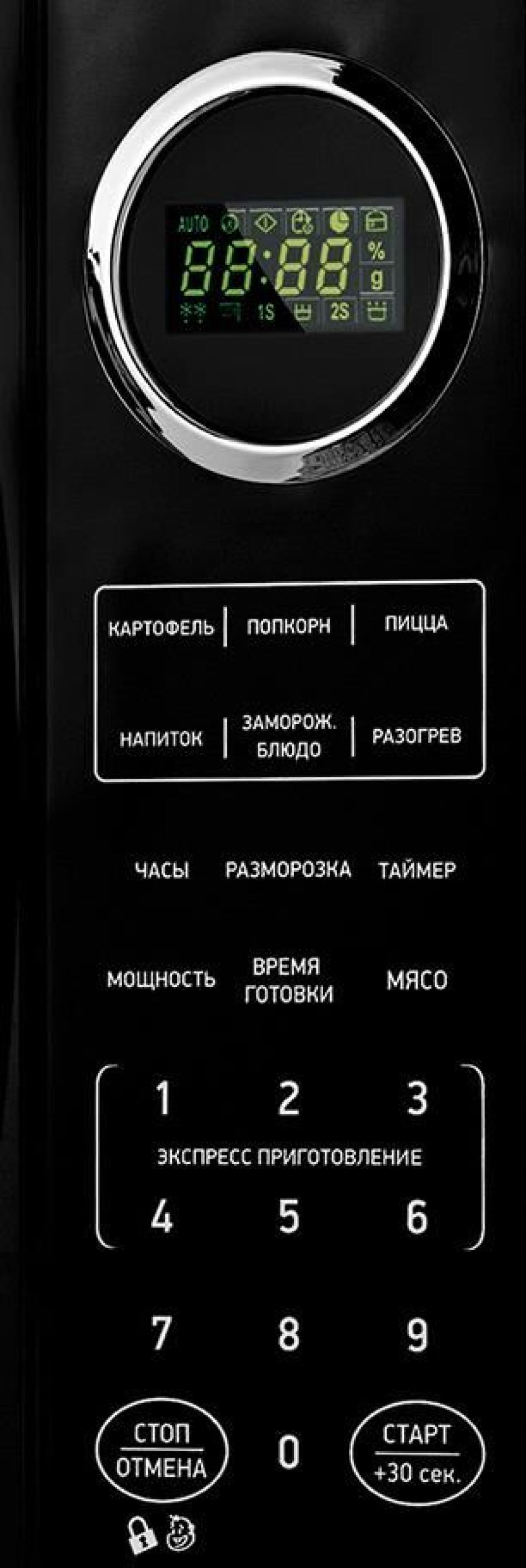 Объем камеры (л) 23 Тип управления электронный Мощность микроволн (Вт) 900 Диаметр поворотного стола (мм) 270 Материал поворотного стола стекло Внутреннее покрытие эмаль Тип открывания дверцы ручка Внутреннее освещение Да Звуковой сигнал Да Таймер (мин) 95 Кол-во ступеней мощности (шт) 10 Микроволны Да Цифровой дисплей Да Светящиеся символы дисплея Да Автоматич. приготовление Да Автоматич. размораживание Да Функция разморозки Да Поэтапное приготовление Да Встроенные часы Да Режим ''защита от детей'' Да Таймер со звуковым сигналом Да Класс электробезопасности 1 Энергопотребление в рабочем режиме (Вт) 1400 Входное напряжение питания (В/Гц) 220-230(50) Наличие заземляющего контакта на вилке Да