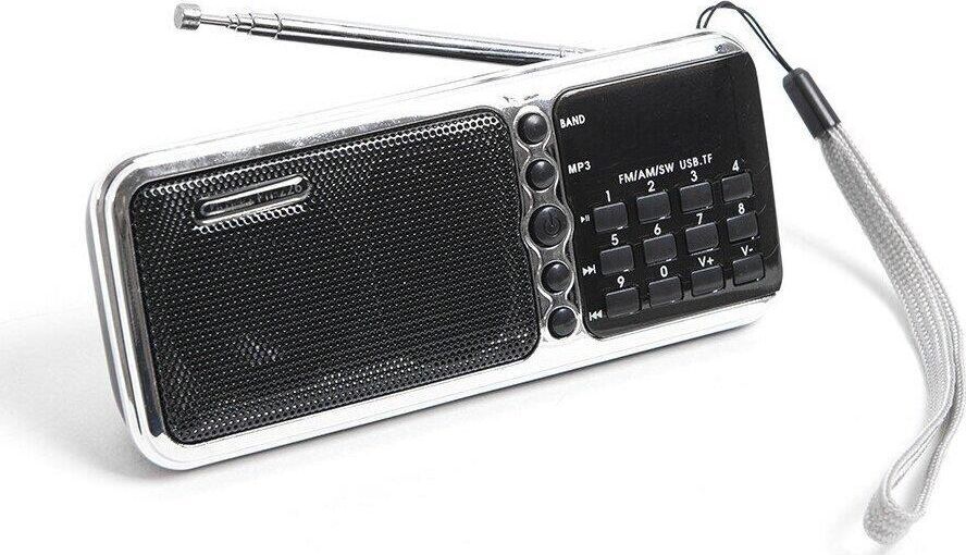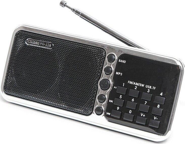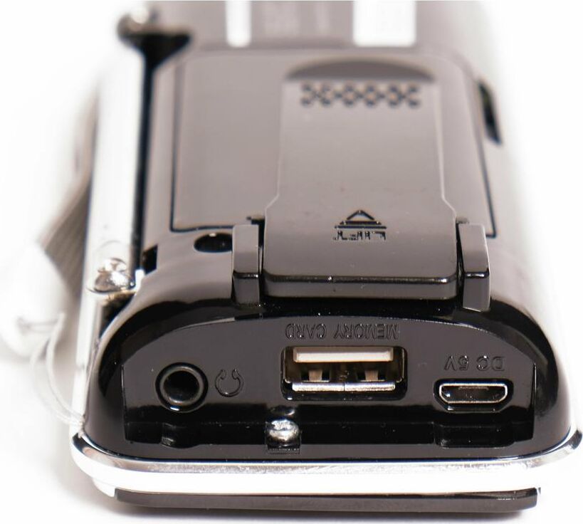 "Тип тюнера: цифровой Диапазоны: УКВ/СВ/КВ Частоты для каждого диапазона: УКВ (64-108МГц) / СВ (522-1620КГц) / КВ (5,8-22,0 МГц) Автонастройка в FM диапазоне: есть, 30 станции Кол-во динамиков: 1шт, монозвучание Мощность динамиков: 40mm/4 /3W Питание: 5V Батарейки: нет Аккумулятор: внешний, тип BL-5C, 1100мА/ч, 1,5ч Размер: 138x33x58мм"