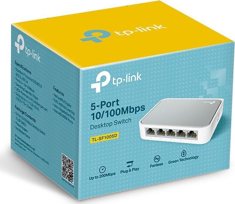 неуправляемый, настольный, порты 10-100Base-TX: 5 шт. Контроль потока IEEE 802.3x обеспечивает надежность передачи данных. Поддержка технологии Plug and Play, не требуется дополнительной настройки. 103,5 x 70 x 22 мм