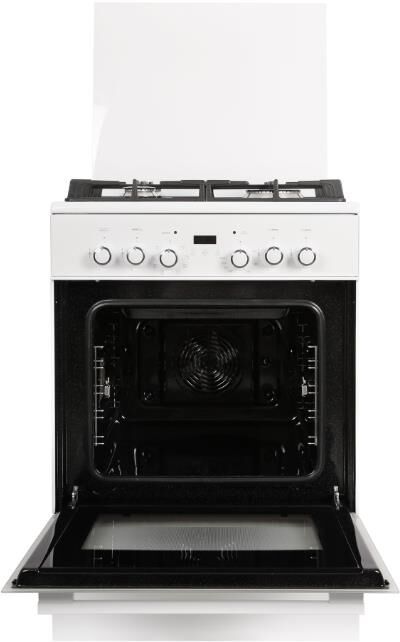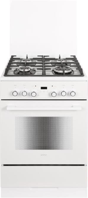 Габариты ШхГхВ, см: 60х60х85; Тип подключения: Газоэлектрический; Объем духового шкафа, л: 55; Количество газовых горелок варочной поверхности: 4; Конвекция; Цвет модели: Белый; Щиток: стекло; Материал варочной поверхности: Стекло; Материал решеток варочной поверхности: Чугун; Двухзонная горелка варочной поверхности; Газ-контроль горелок стола; Электророзжиг горелок стола: Розжиг встроен в ручки; Таймер: Сенсорный; Тип направляющих духового шкафа: Съемные проволочные; Тип очистки: Гидролизная; Внутреннее покрытие духового шкафа: Эмаль легкой очистки SMART CERAMIC; Количество стекол в дверце духового шкафа: 2; Тип духового шкафа: Электрический; Ящик для посуды и принадлежностей: Выдвижной ящик; Внутреннее освещение духового шкафа: Двойное; Контроль температуры духового шкафа: Термостат; Гриль: Электрический; Круговой ТЭН, Вт: 2000; Вертел; Шашлычница; Жаровня: 1; Противень:1; Решетка варочной поверхности: 1; Решетка духового шкафа: 1