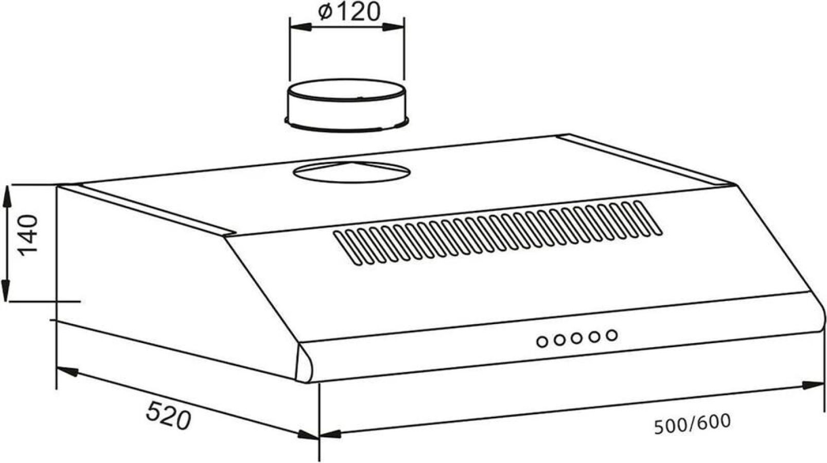 Белый, Ширина 600мм, Воздушный поток 400 м?/ч, Мощность освещения 1x5 Вт, 2 aлюминиевых фильтра, необходимое количество угольных фильтров - 1 шт, Модель угольного фильтра PF-01, Уровень шума 44 дБ, кнопочное управление, Вес нетто 5,30 кг, Турция