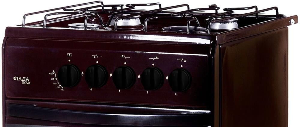 Габаритные размеры, см 50 х 60 х 85 * Цвет коричневый * Материал варочной поверхности эмаль * Объем духовки 50л * — Газ-контроль горелок духовки — Двойное стекло дверцы духовки * Материал духового шкафа эмаль * 4-х горелочная, газ-контроль горелки духовки, проволочная решетка стола, хоз. отсек, решетка духовки, без жаровни *