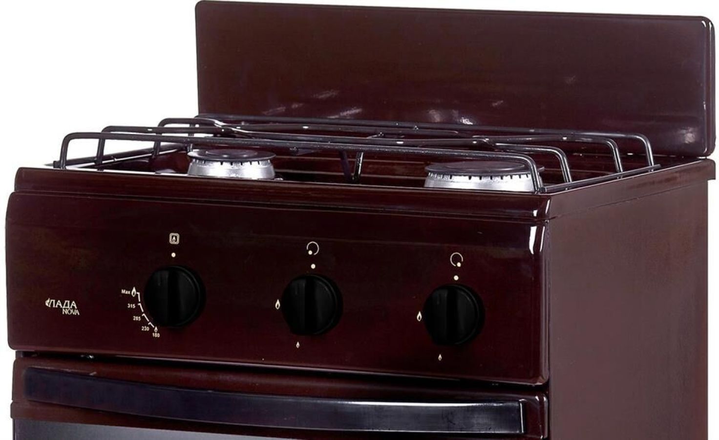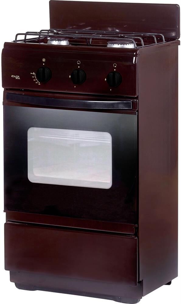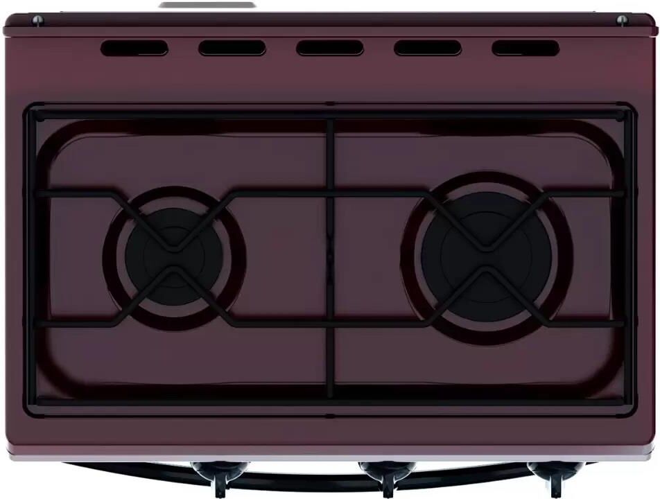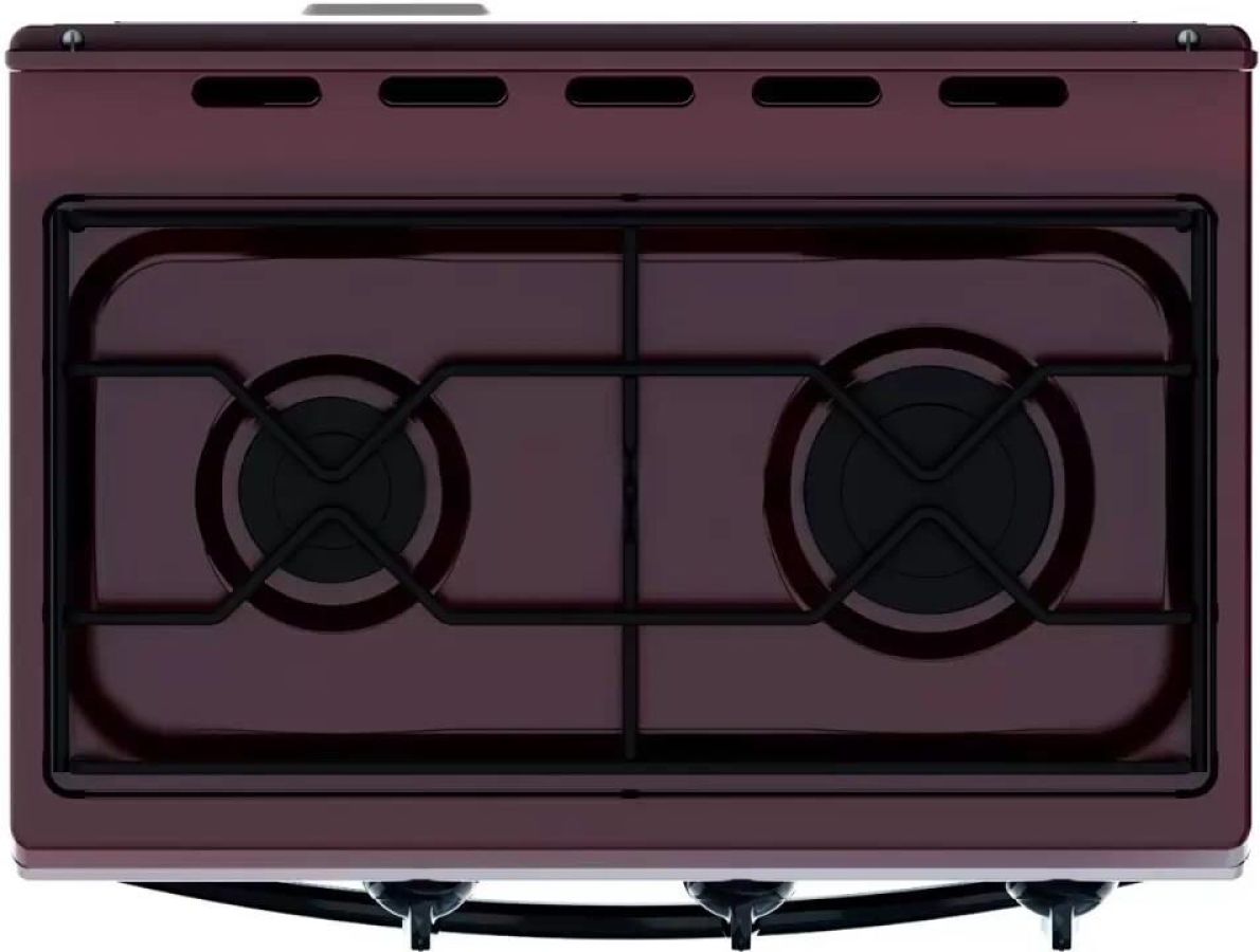 Габаритные размеры, см 50 х 40 х 85 * Цвет коричневый * 2-х горелочная, щиток, газ-контроль горелки духовки, проволочная решетка стола, хоз. отсек, решетка духовки, жаровня * Материал варочной поверхности эмаль * Материал крышки/щитка металл * Объем духовки 30л * — Газ-контроль горелок духовки — Двойное стекло дверцы духовки * Материал духового шкафа эмаль *