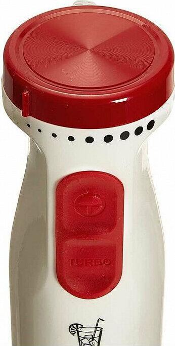 Параметры Максимальная мощность 1000 Вт Номинальная потребляемая мощность 600 Вт Описание Блендер электрический предназначен для смешивания, измельчения и взбивания продуктов и жидкостей в бытовых и аналогичных условиях Цвет: белый с красным Насадка и нож из нержавеющей стали 1 скорость работы Плавная регулировка скорости Режим «ТУРБО» Упаковка: цветная коробка