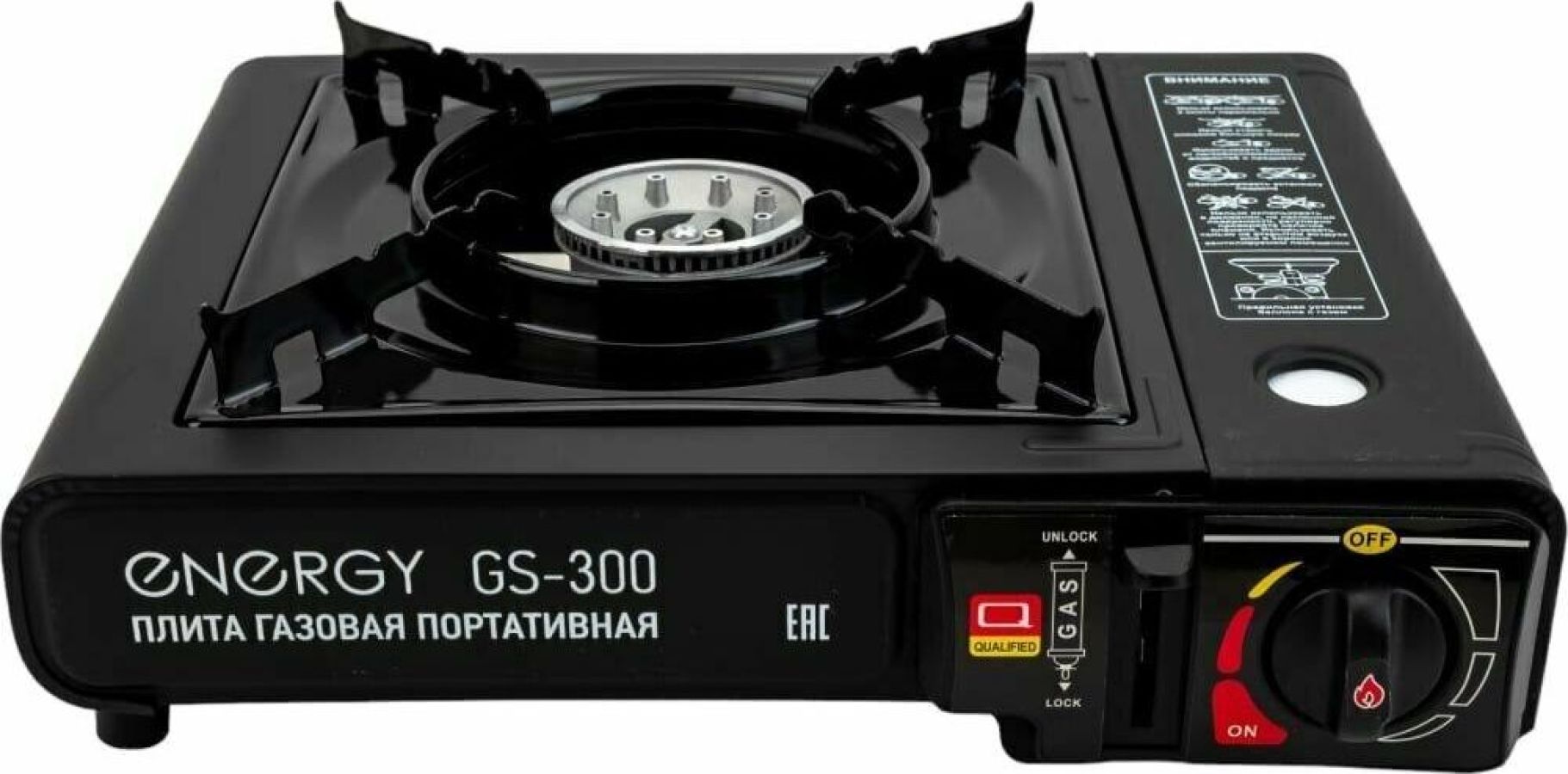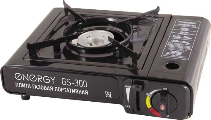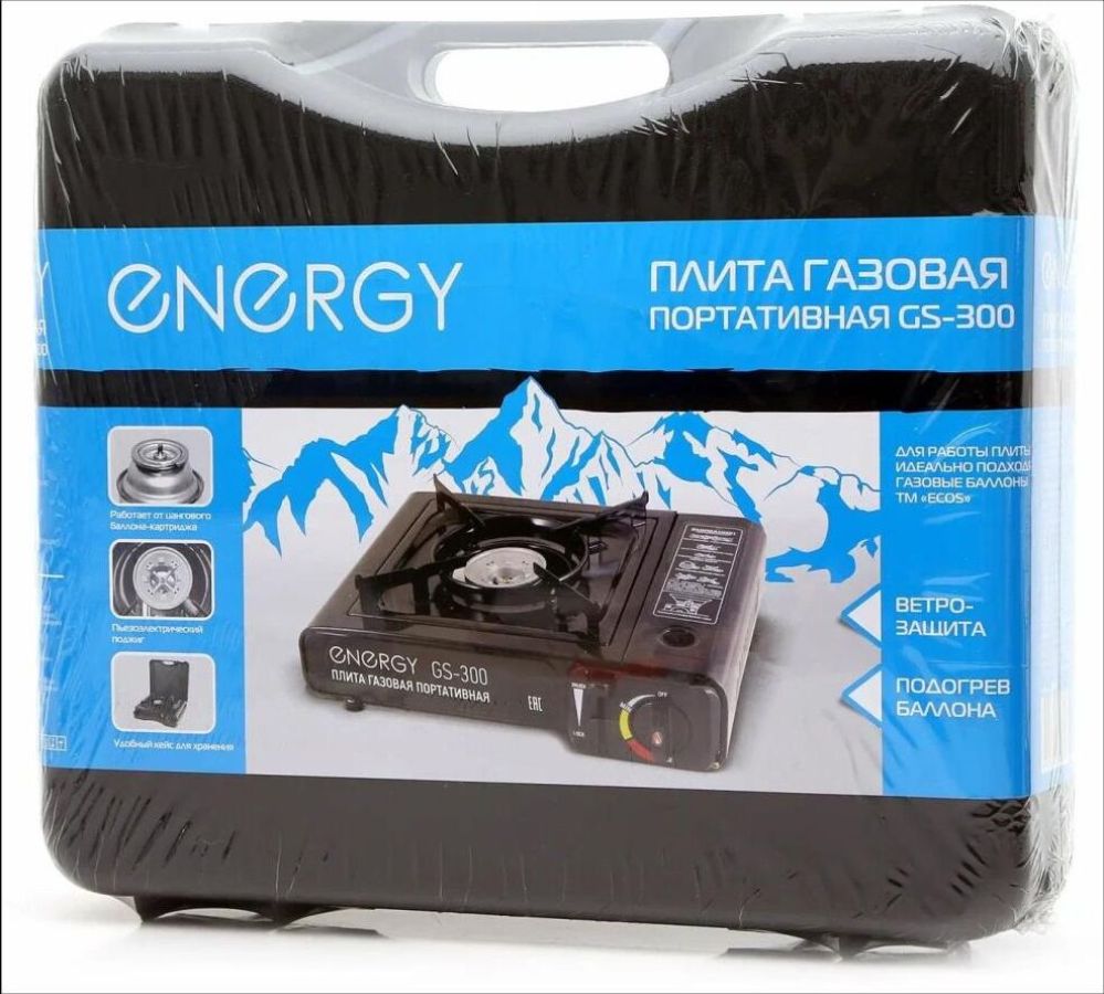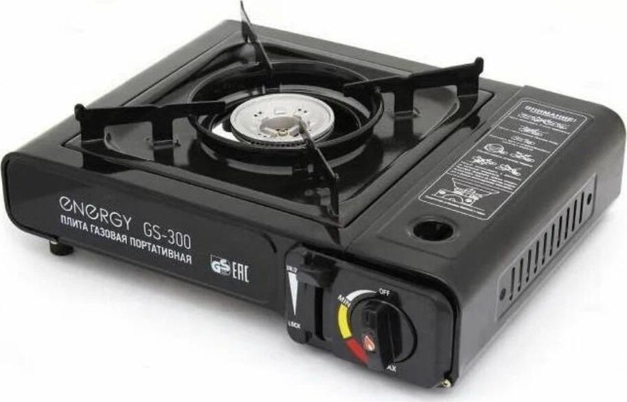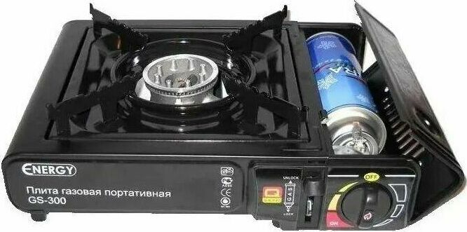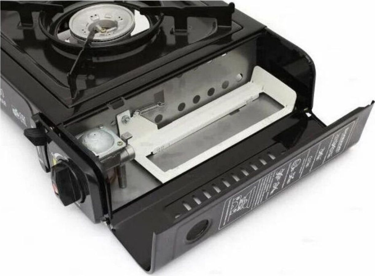 Мощность 8000BTU (2.5 КВт) - Пьезоподжиг - Регулятор пламени - Рабочая поверхность - нержавеющая сталь - Походная плитка - Работает от стандартного цангового баллона-катриджа с пропаном - В кейсе
