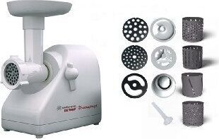 Электромясорубка КЭМ-П2У 304 Пиковая мощность: 300Вт Номинальная мощность: 1800Вт Реверс: есть Цвет: бело Решетки: 3 Шинковки: 4 Тесто/колбасы: есть Соковыжималка: есть