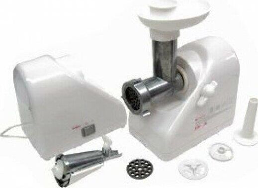 Пиковая мощность: 1 000 Вт * Количество сменных решеток: 3 * Количество сменных барабанов: 4 * Мясорубка: 36 кг/ч; * Шинковка: 16 кг/ч * Насадка для набивки колбасок *