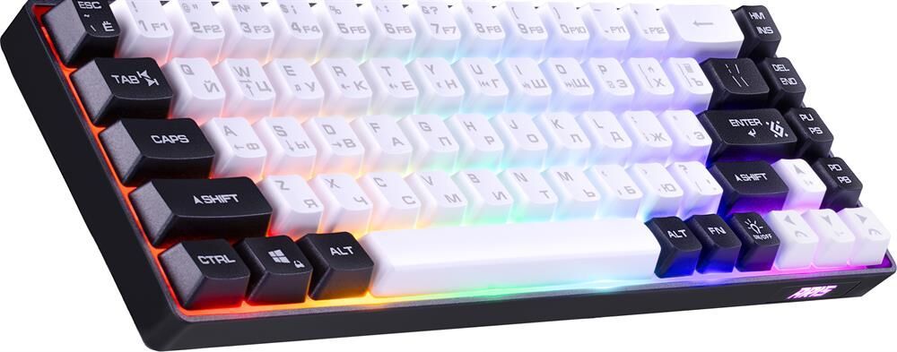 Ультракомпактная игровая клавиатура с кейкапами двух цветов и регулируемой радужной подсветкой. Основные особенности модели: блокировка клавиши Win, обмен функциями между клавишами WASD и стрелками, а также поддержка Anti Ghost для 19 клавиш.