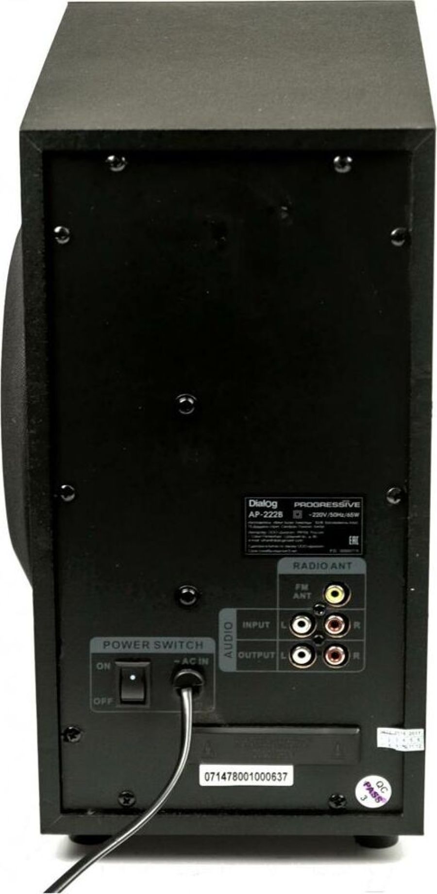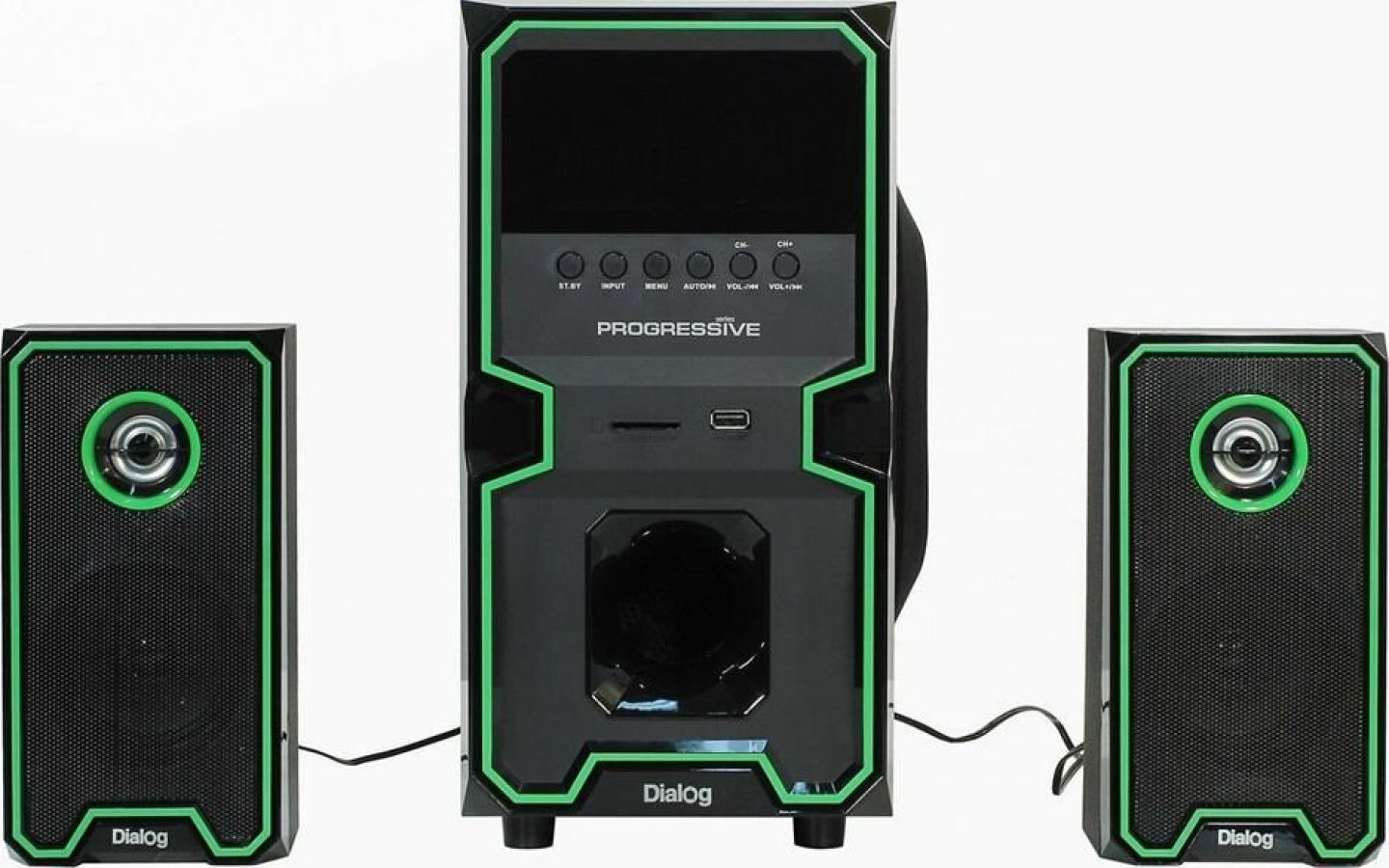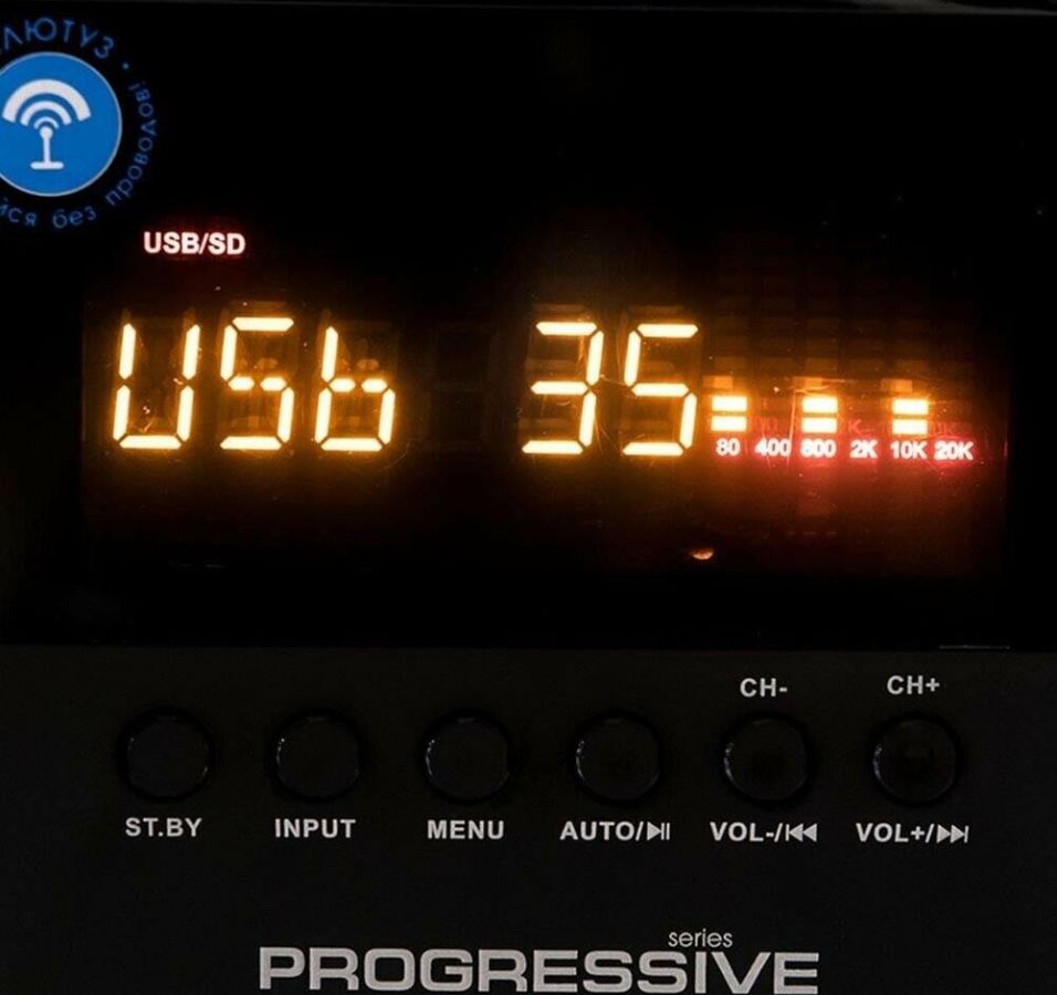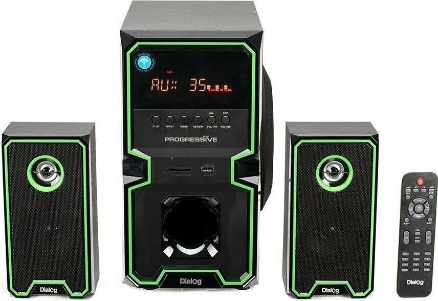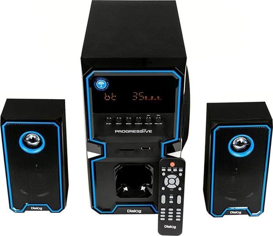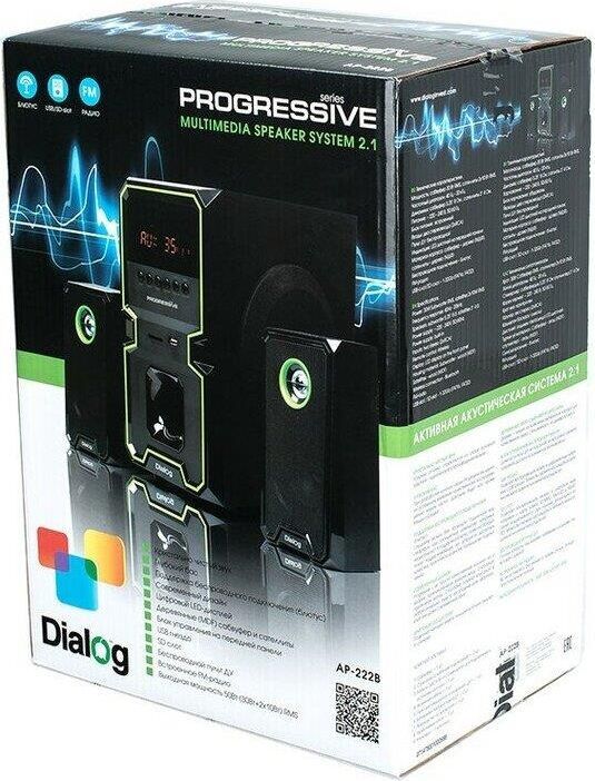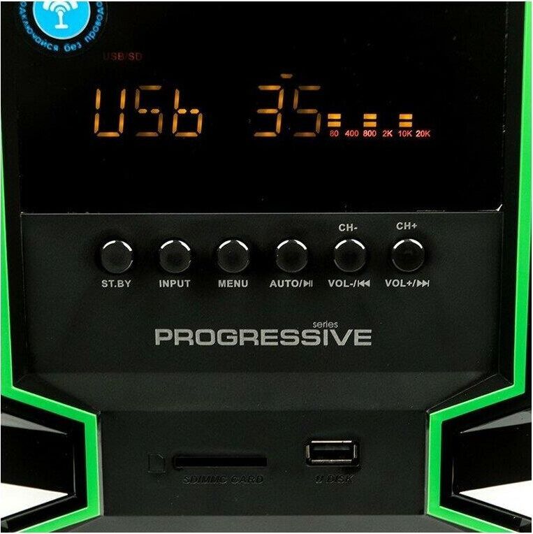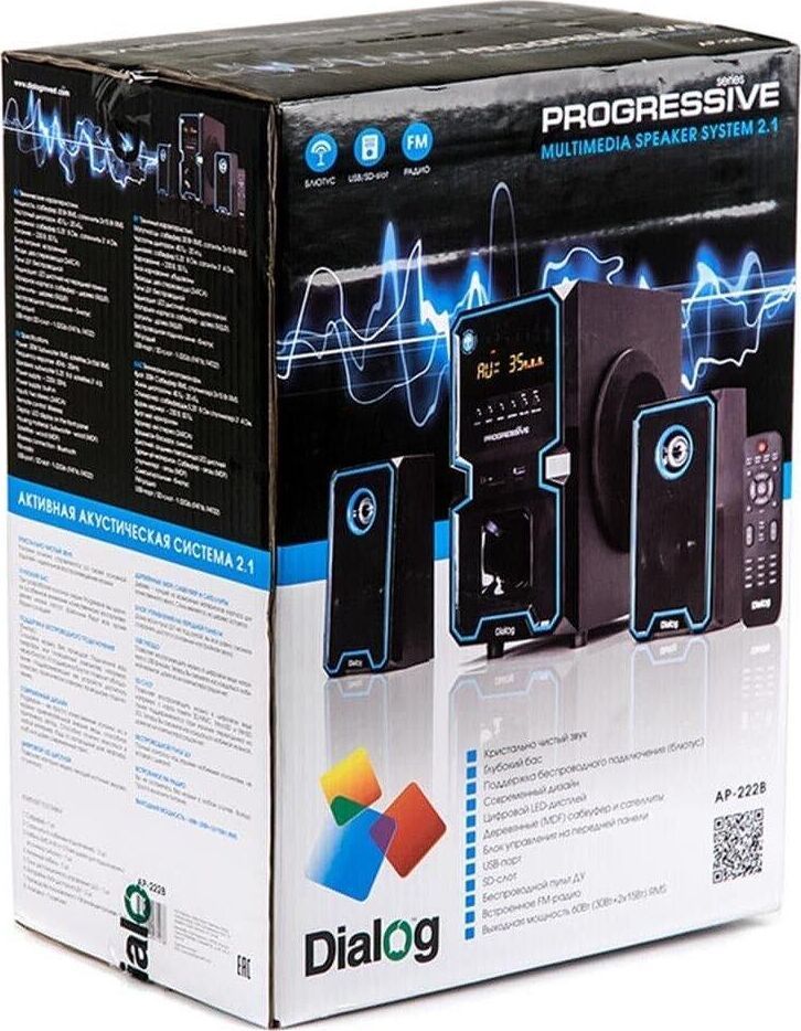 Активная акустическая система 2.1. Поддержка карт SD (Secure Digital), USB, FM, Bluetooth. Мощность RMS (Вт): 60 (30+15+15). Усилитель: встроенный. Компоненты: сабвуфер, два сателлита, пульт ДУ. Входы: стереовход (2RCA); USB порт для флэш-накопителей; Слот для SD карт. Сабвуфер - 5,25". Частотный диапазон (Гц-Гц): от 40 Гц. Сопротивление (Ом): 4. Габаритные размеры (В*Ш*Г): 310*165*280 мм. Сателлиты - 3". Частотный диапазон (Гц-КГц): до 20 кГц. Сопротивление (Ом): 4. Габаритные размеры (В*Ш*Г): 200*105*85 мм. Корпус: 9 мм сабвуфер / 4 мм сателлиты. Длина сетевого кабеля: 1,4 м.
