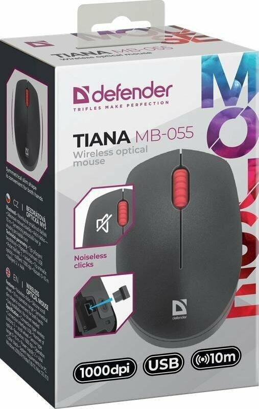 Мышь беспроводная, интерфейс USB, количество кнопок - 2, колесо прокрутки, разрешение 1000 dpi, бесшумное нажатие кнопок, радиус действия до 10 м.