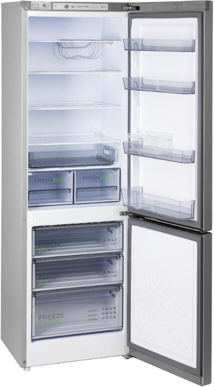 Габариты ВхШхГ, см: 190х60х62,5; Цвет: Металлик; Количество камер: 2; Расположение морозильной камеры: Нижнее; Тип компрессора: Инверторный; Класс энергоэффективности: A++; Автономное сохранение холода: 17 ч; Минимальная температура в морозильной камере -18 °C; Управление: Механическое; Количество ящиков в морозильном отделении: 3; Общий объем: 345 л; Общий полезный объем: 295 л; Полезный объем холодильной камеры: 225 л; Оттаивание холодильной камеры: капельное; Объем морозильной камеры: 100 л; Материал полок: стекло/пластик; Количество ящиков в холодильном отделении: 2; Суточный расход электроэнергии, при температуре окружающего воздуха 24°C: 58 кВтч; Количество полок в холодильном отделении: 5; Температура в отделении для хранения свежих пищевых продуктов: От 0 до 8 °C; Мощность замораживания: 5 кг/сутки; Размораживание морозильной камеры: ручное; Климатический класс: N, ST; Максимальный уровень шума: 39 дБ; Количество компрессоров: 1; Освещение: LED; Объем холодильной камеры: 245 л