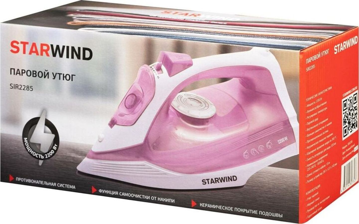 Мощность: 2200 Ватт Емкость для воды 320 мл Регулировка температуры Функция разбрызгивания Паровой удар Вертикальное отпаривание Функция самоочистки от накипи Противокапельная система Керамическое покрытие подошвы Шарнирное вращение шнура на 360 °С Длина сетевого шнура 1,8 м