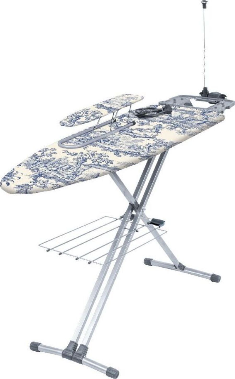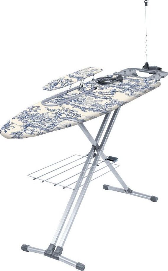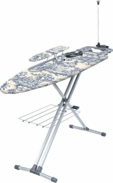 Размер гладильной поверхности 122х40см.Основа полотна металл.Автоматический многоуровневый регулятор высоты до 0,9 м.Двухпозиционная EURO подставка под утюг с термостойкими силиконовыми вставками, специально для утюгов с тефлоновым покрытием. Широкая гладильная поверхность позволяет гладить постельное белье и скатерти. Сертифицированный электросоединитель 2,2 м. Удобная полка для белья. Подвижный складной держатель шнура. Подрукавник переносной. Съемный чехол из качественных х/б.Масса, кг7,95.