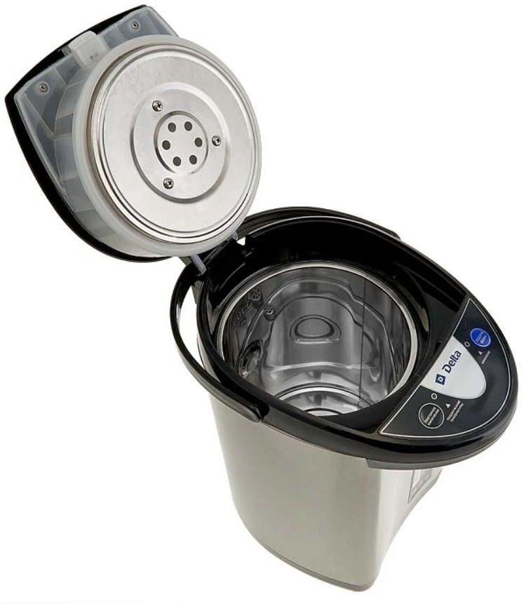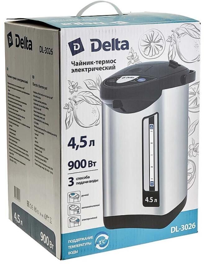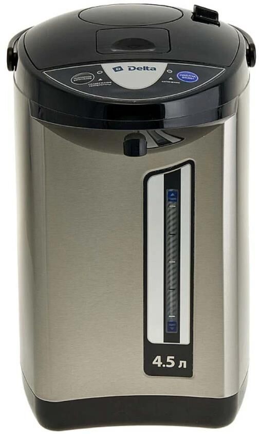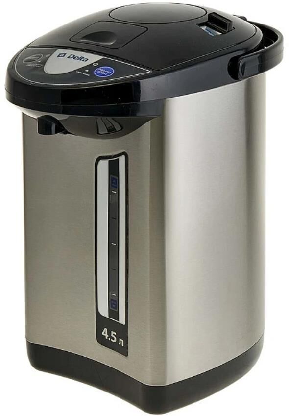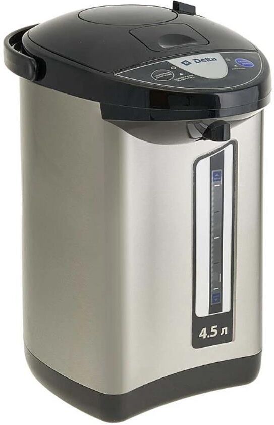 Параметры Объем 4,5 л Номинальная потребляемая мощность 900 Вт Мощность в режиме поддержания температуры воды 30 Вт Описание Чайник-термос электрический предназначен для нагрева воды и поддержания ее температуры в бытовых и аналогичных условиях Корпус и внутренняя ёмкость из высококачественной нержавеющей стали Вращение корпуса на основании на 360° Шкала уровня воды Световые индикаторы работы Съёмный шнур электропитания Съёмная крышка для удобства очистки 3 способа подачи воды: - ручной - автоматический - электрический Режим поддержания температуры воды Функция повторного кипячения Блокировка ручной помпы от случайного нажатия Блокировка включения без воды Автоматическое отключение при закипании Двойная защита от перегрева