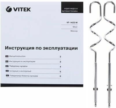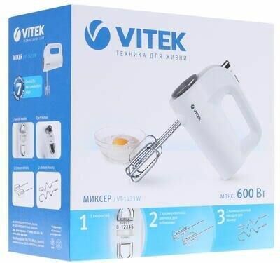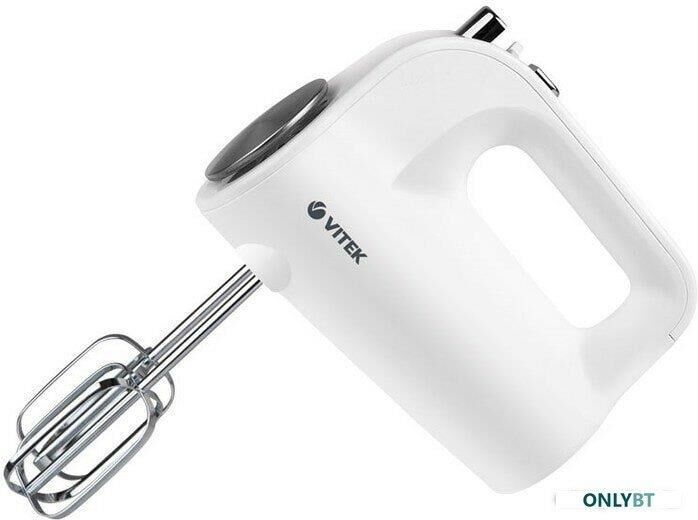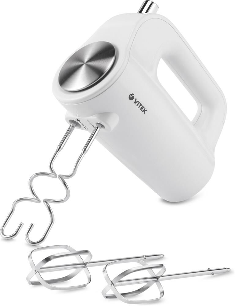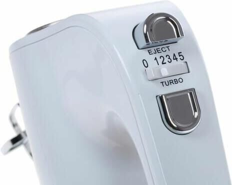 Миксер ручной. Мощность: 600 вт, Число скоростей: 5, Турборежим, Венчик для взбивания: 2, Крюки для замешивания теста, Количество насадок: 4, Кнопка отсоединения насадок, Материал корпуса: пластик, Длина сетевого шнура: 120 см, Цвет: Белый