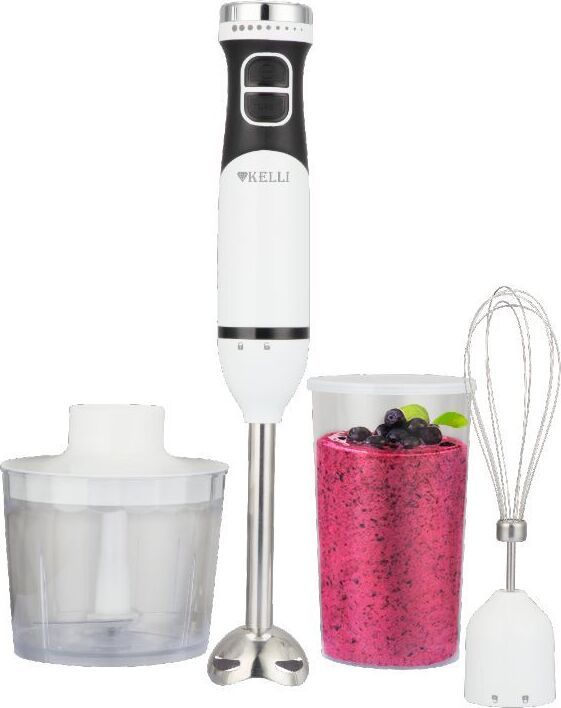 Блендер * Мощность: 1500 Вт * Мерный стакан: 700 мл * Чаша измельчителя: 500 мл * Венчик для взбивания * Ножи из нержавеющей стали * Число скоростей: 2 * Удобная эргономичная прорезиненная ручка * Плавный регулятор мощности * Металлическая погружная часть * 220-240 В, 50\ Гц * Мощный мотор *