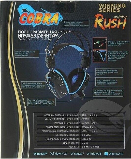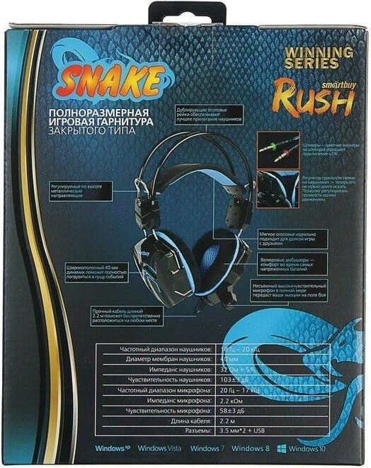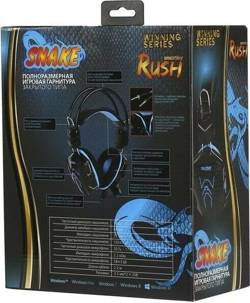 Наушники с гарнитурой SMARTBUY (SBHG-1000) RUSH SNAKE черно-синий в интернет магазине КорБТ