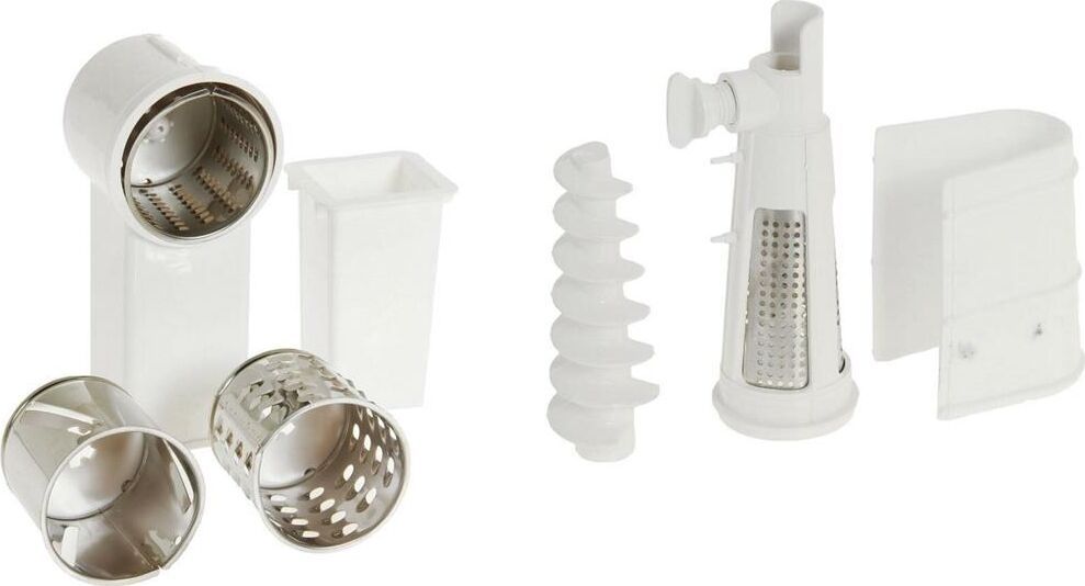 Белый мощность: 250 Вт производительность: 0.58 кг/мин система реверса: есть насадки: насадка-терка, насадка для шинковки, диск для фарша материал корпуса: пластик тип соковыжималки: шнековая особенности: прорезиненные ножки, мытье в ПММ
