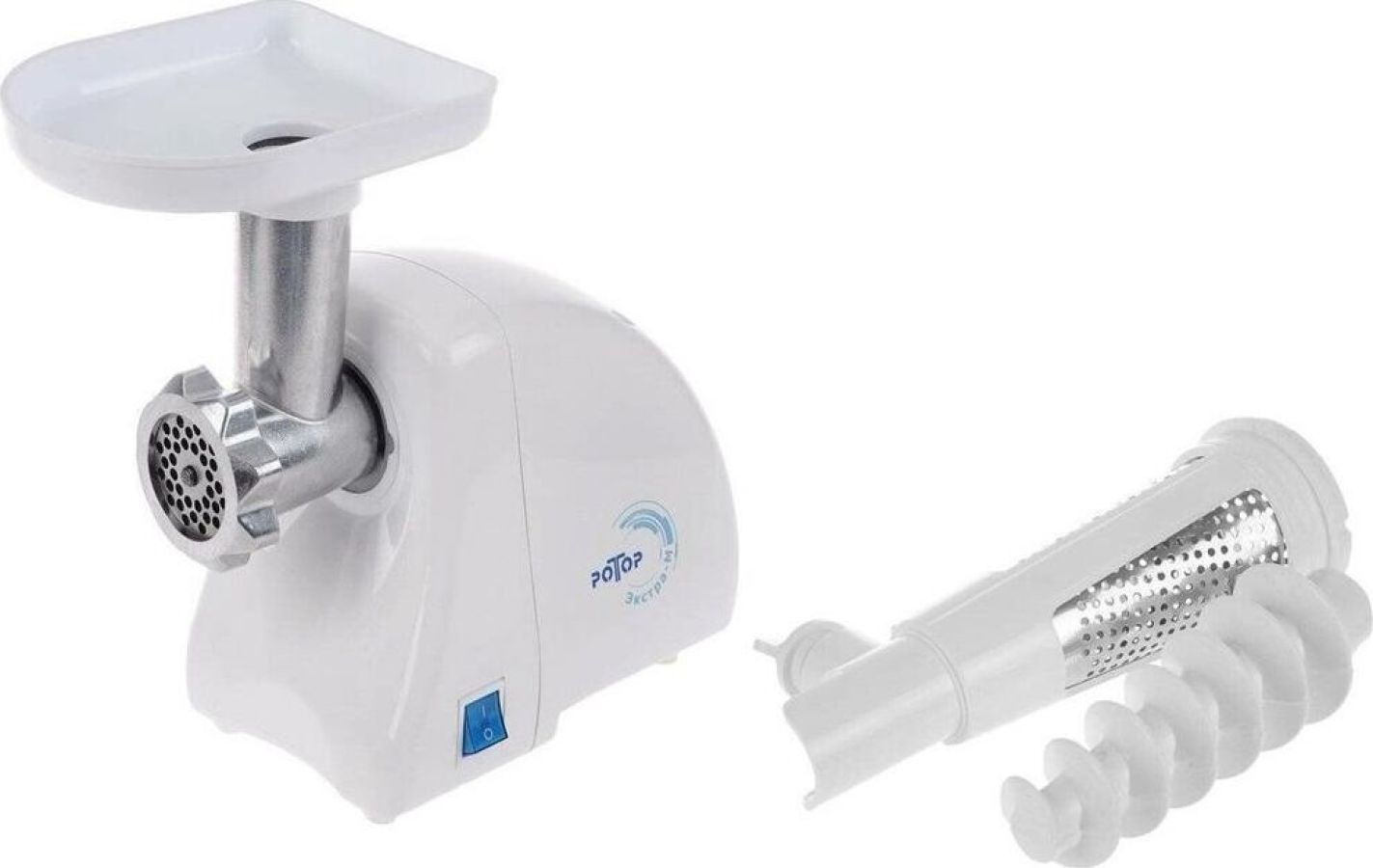 цвет белый, мощность: 250 Вт производительность: 0.58 кг/мин система реверса: есть насадки: диск для фарша материал корпуса: пластик тип соковыжималки: шнековая особенности: прорезиненные ножки, мытье в ПММ