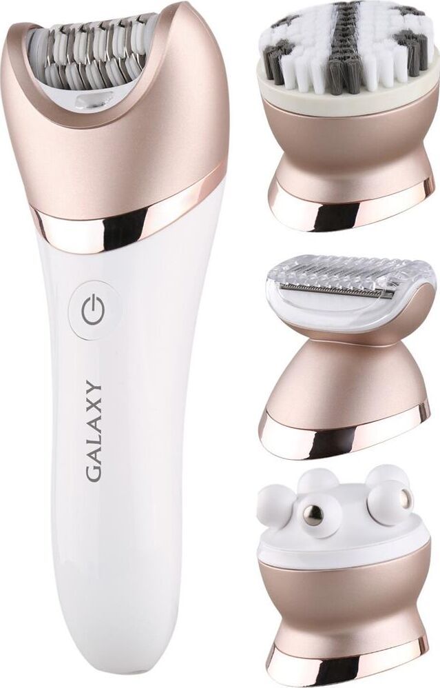 GALAXY GL 4960 прибор для ухода за кожей лица 2 скорости 45 минут непрерывной работы Защита от водяных брызг и струй с любого направления 4 насадки: массажная насадка насадка для эпиляции насадка для очищения лица насадка-бритва Работа от аккумулятора