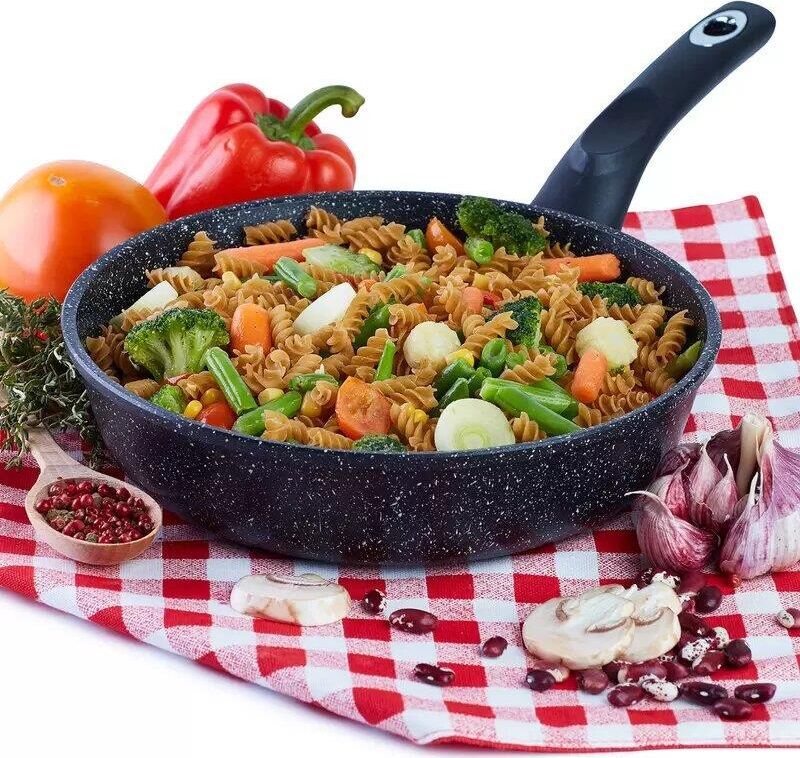 Размер, см: 24см Материал: литой алюминий Коллекция/серия: Гранит плюс Толщина дна: 6 Толщина стенок: 4.8 Источник тепла: Все виды плит, в том числе индукционная Тип упаковки: цветной рукав Внутреннее покрытие: антипригарное покрытие Greblon NewTec C2+ Внешнее покрытие: антипригарное покрытие Greblon NewTec C2+