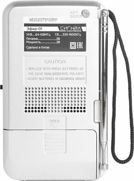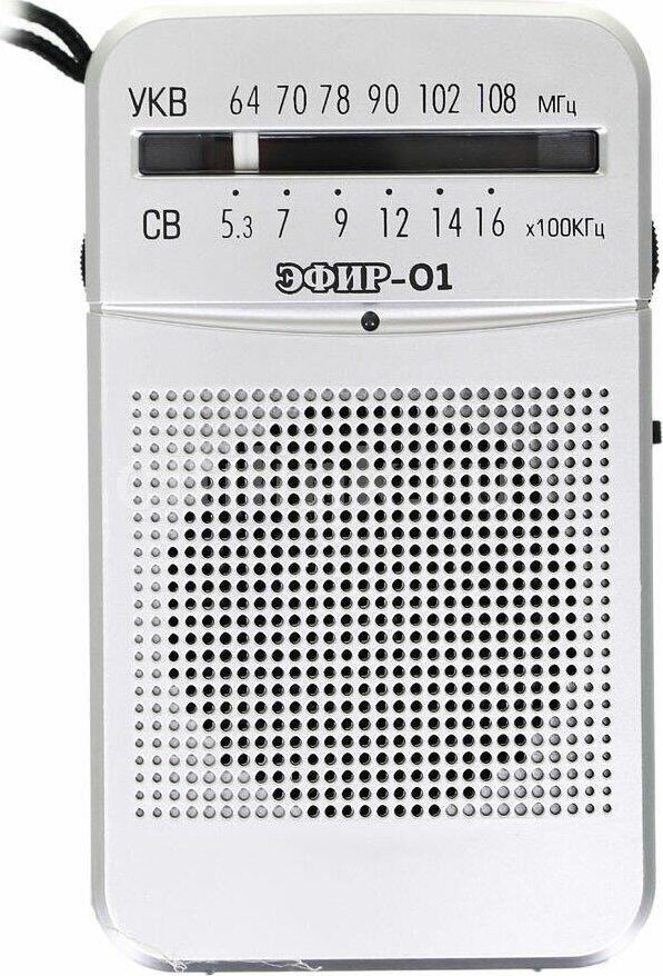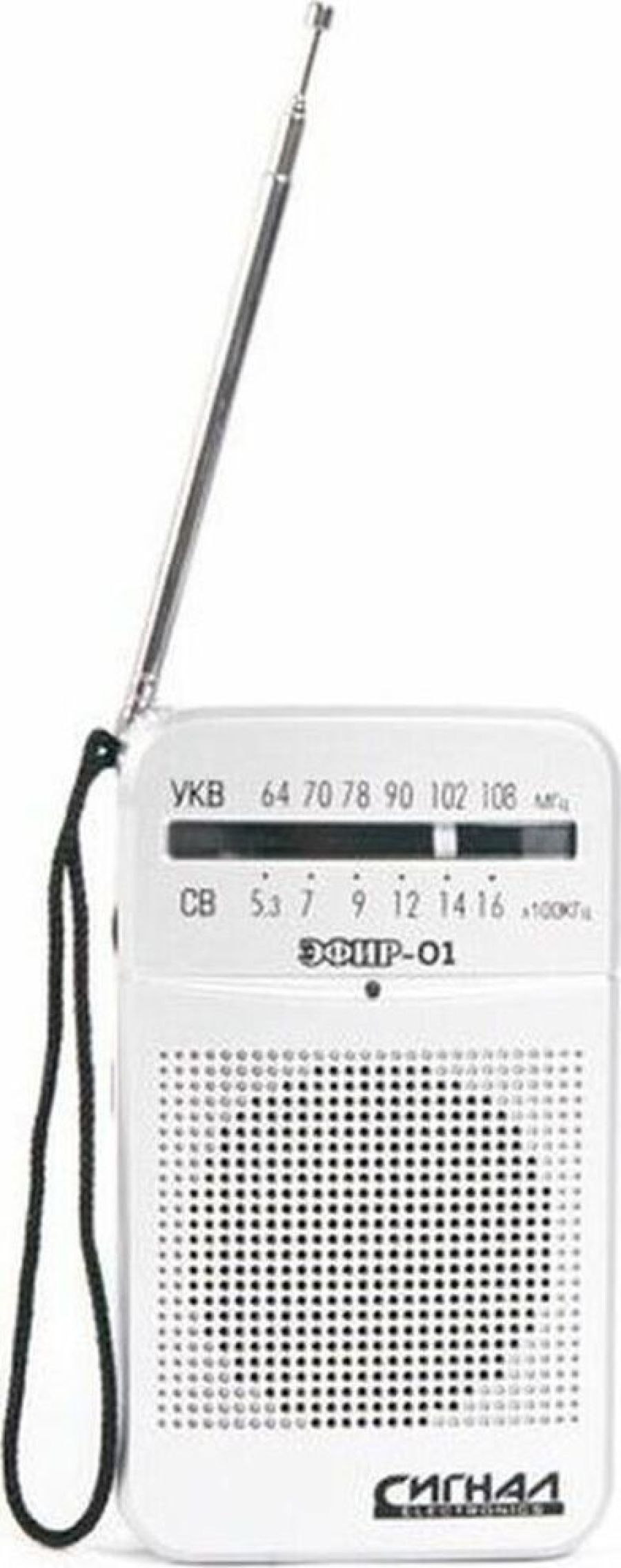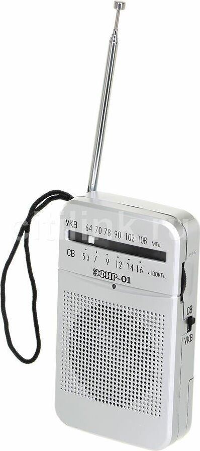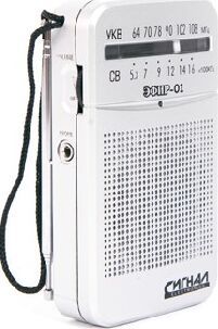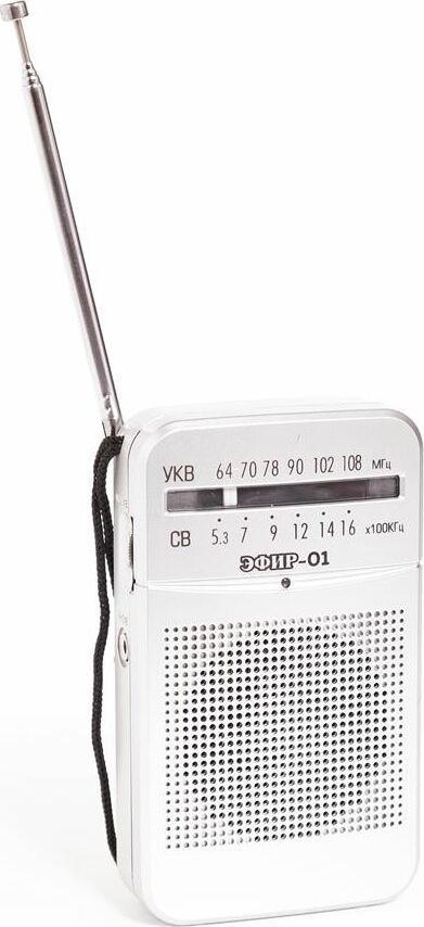 Тюнер аналоговый, диапазоны/частоты УКВ 64-108МГц / СВ 530-1600КГц, 1 динамик, мощность динамика Ф57mm/8Ом/1W, питание 3В, батарейки АА*2шт (не в компл), размер 118*29*72мм, телескопическая антенна, разъем под наушники, ручка для переноски.