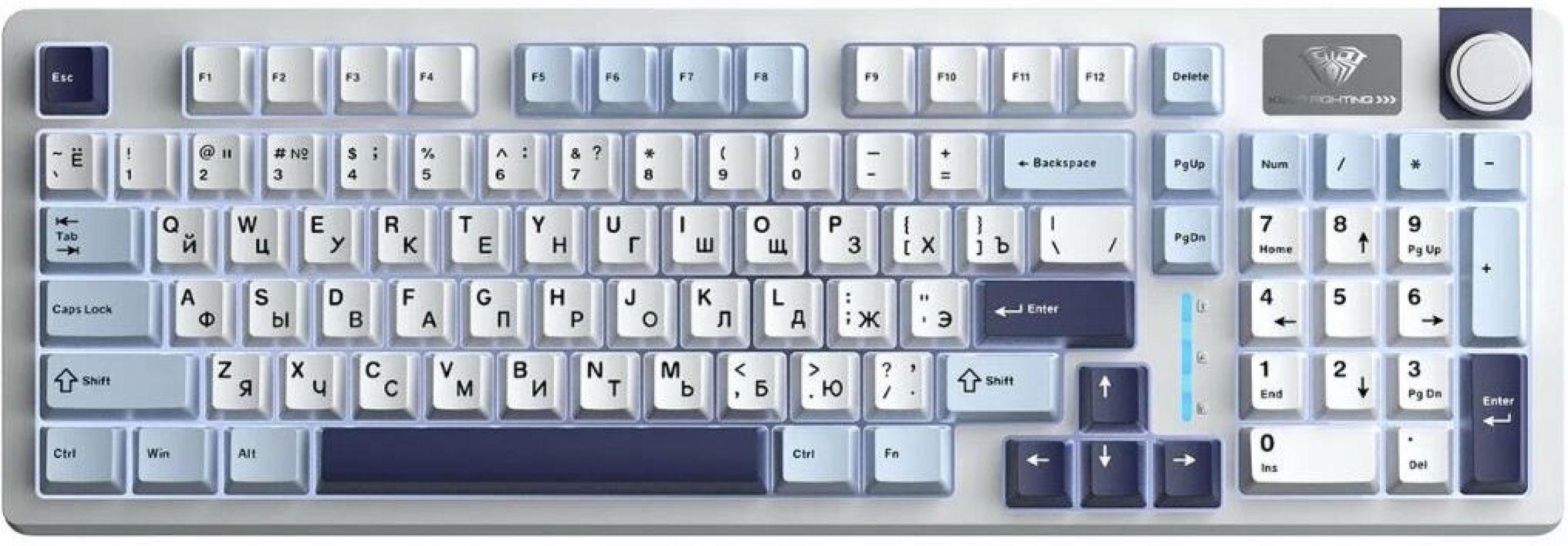Беспроводная механическая клавиатура Варианты подключения: Проводное, Bluetooth, 2.4 Гц, Количество клавиш: 96, Интерфейс заряда/проводного подключения: Type-C (Кабель USB Type-C в комплекте) кабель 160 см, Размеры: 406*137,9*45 см, белая подсветка, салатовые свитчи , русская раскладка
