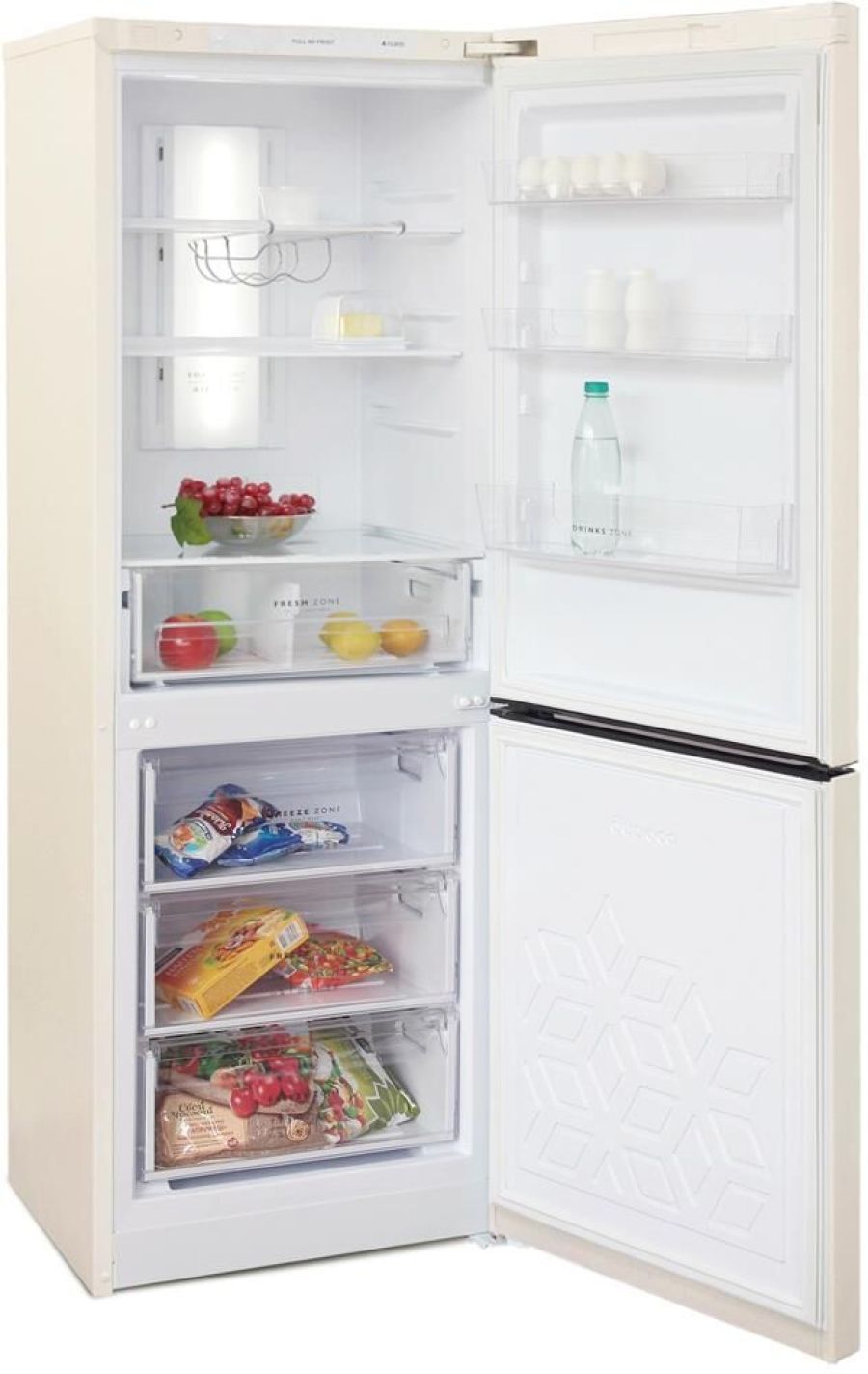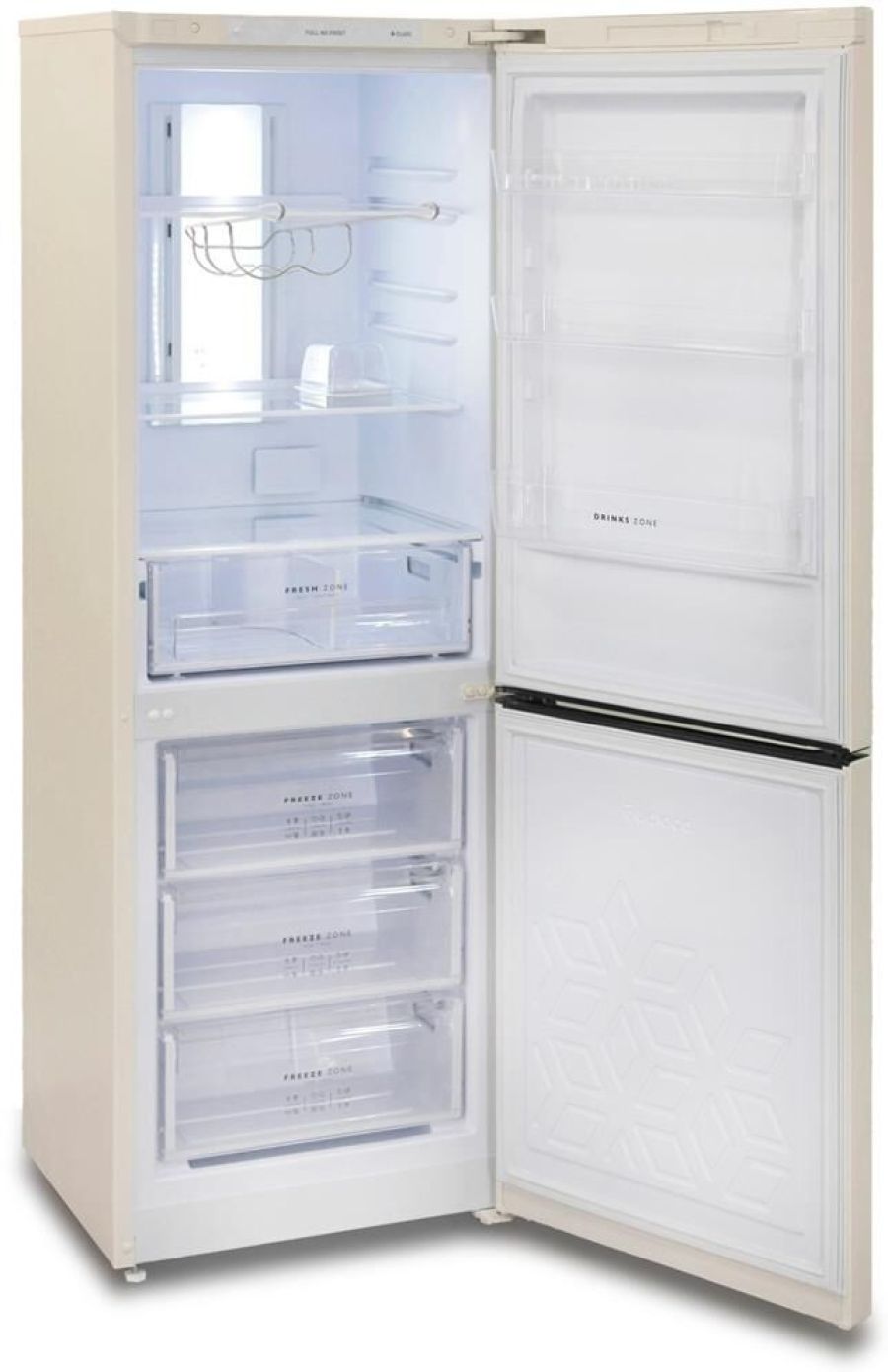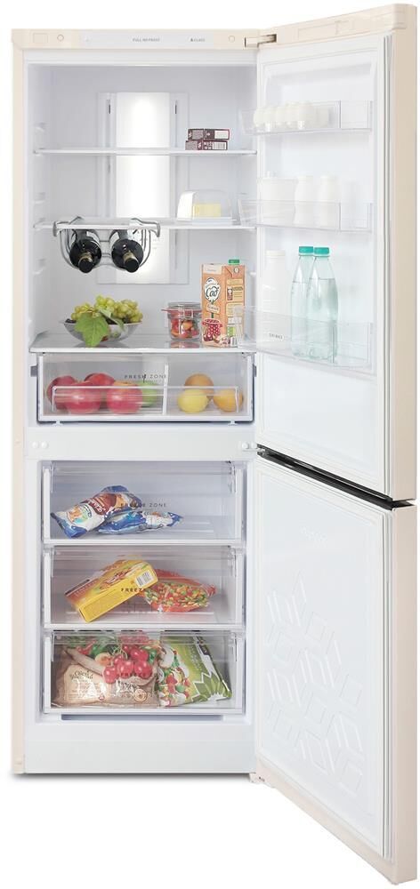 Двухкамерный холодильник с нижней морозильной камерой с системой Full No Frost с дисплеем на двери • габариты 175х60х62,5см • объем 310/210/100л * цвет Бежевый • LED дисплей на двери • система охлаждения Multi Air Flow • регулировка влажности Humidity control • единая зона для овощей и фруктов Fresh Zone с разделителем • полка для бутылок, масленка • LED освещение •
