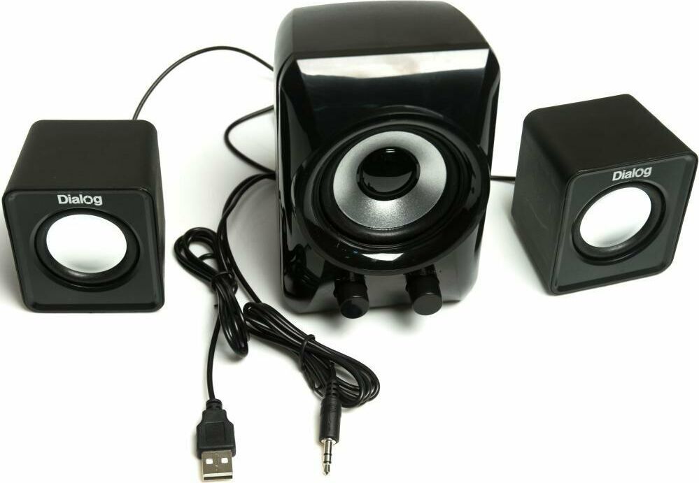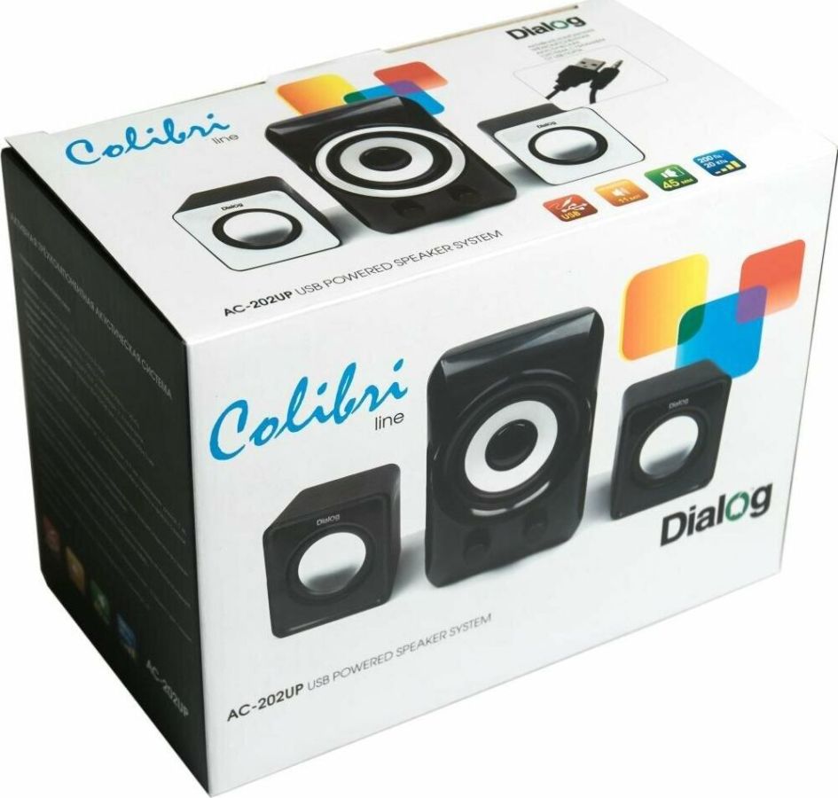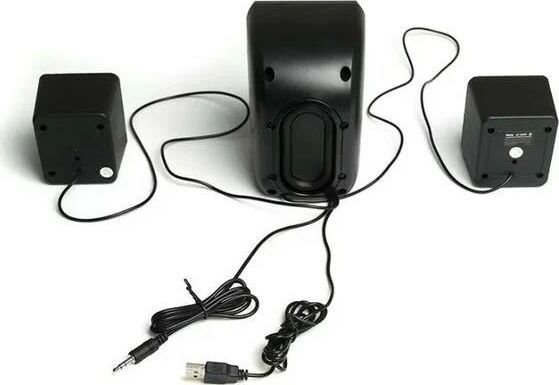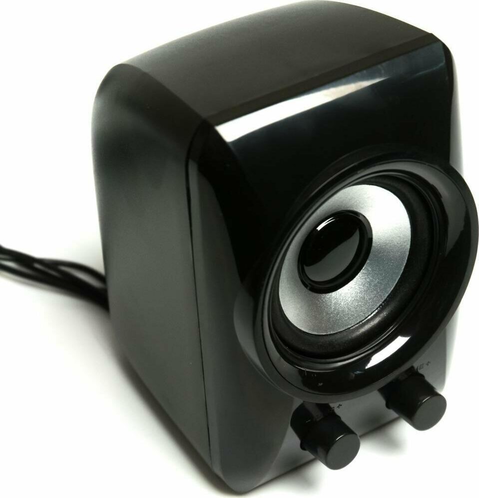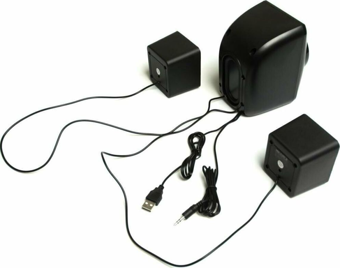 Мощность RMS 11(Вт), встроенный усилитель, стереовход (джек 3.5 мм), сабвуфер 2,4", мощность 5Вт, сателиты 1,8", мощность 3Вт, габаритные размеры (В*Ш*Г) мм: 55*70*62, цвет: черный.