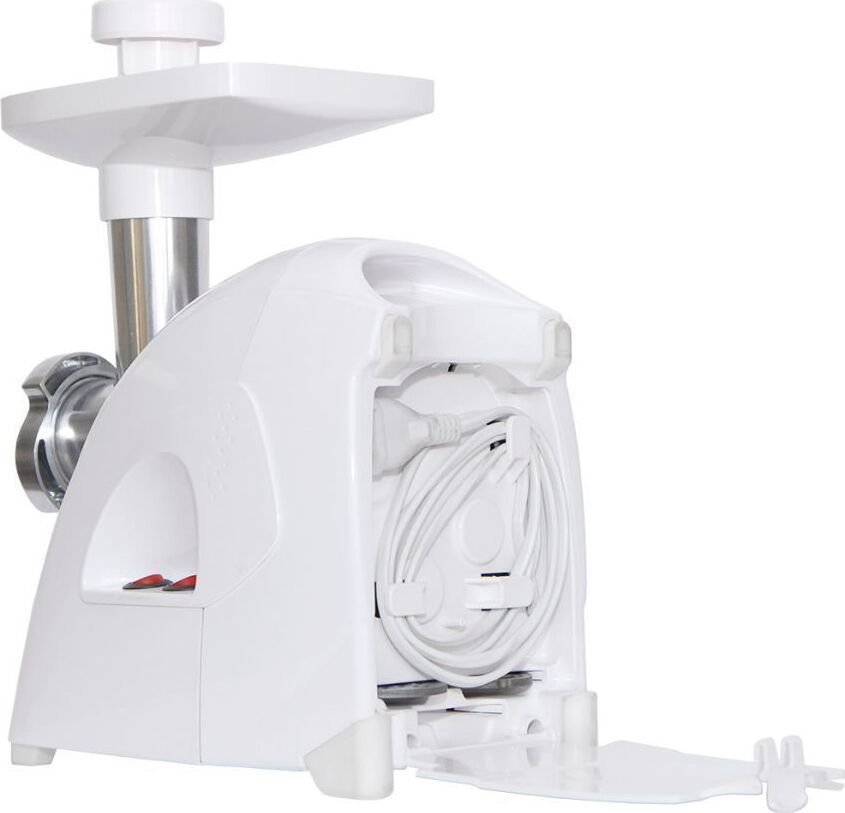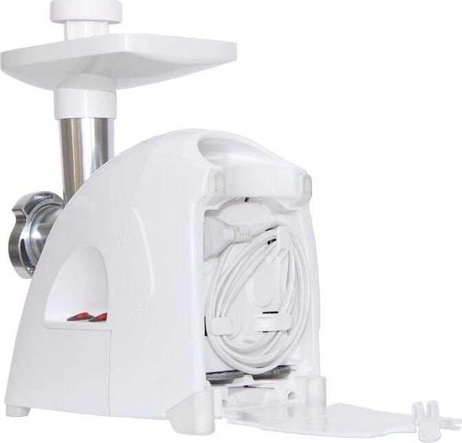 Мощность 1700 Вт. Производительность 2 кг/мин. Номинальная потребляемая мощность 250 Вт. Двойная защита от перегрузки; Функция «реверс» для предотвращения наматывания жилок на шнек; Отсек в корпусе для шнура питания, хранения ножа и насадок; 3 вида решеток для получения фарша разной консистенции - с диаметром отверстий 4,9 мм и 7 мм, а также овальными отверстиями; Экран для защиты от брызг, который поможет сохранить кухню в чистоте; Высокое размещение шнековой камеры; Возможность вертикального хранения для экономии пространства на кухне; Ручка для переноски; Устойчивые нескользящие ножки для фиксации мясорубки на поверхности стола;