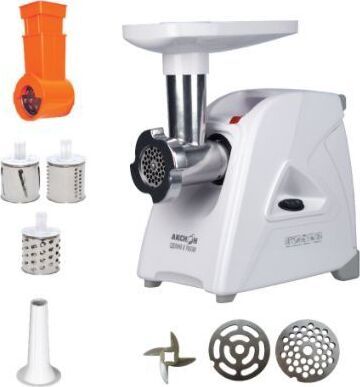 Максимальная мощность - 1500 Вт. Максимальная производительность – 1,7 кг/мин. В комплекте: приставка овощерезка, экран для защиты от брызг; 3 решетки из нержавеющей стали с отверстиями Ø 4,9 мм, 7 мм, продолговатыми отверстиями, нож из нержавеющей стали с саблевидными режущими кромками, 3 запасных пластиковых колпачка. Преимущества: двойная защита двигателя от перегрузки, функция «реверс» для предотвращения наматывания жилок на шнек, удобное хранение шнура питания и решеток в отсеке с откидной крышкой,в озможность вертикального хранения для экономии пространства