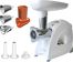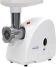 Номинальная потребляемая мощность 300 Вт. Материал корпуса пластик. Панель управления механическая. Длина провода 1,5 м. Материал ножей нержавеющая сталь. Производительность 4 кг/мин. Мощность 2000 Вт. Цвет белый. Производительность — до 3 кг фарша в минуту. Двойная защита от перегрузки. Функция «реверс» для предотвращения наматывания жилок на шнек. Отсек в корпусе для шнура питания, хранения ножа и насадок. Особая заточка ножа и решетки увеличенной толщины из нержавеющей стали, обеспечивающие высокое качество фарша из всех видов мяса и других продуктов. До 30 минут непрерывной работы. 2 вида решеток для получения фарша разной консистенции - с диаметром отверстий 4,9 мм и 8,5 мм. Высокое размещение шнековой камеры. Эргономичная гайка для удобной сборки/разборки мясорубки. Ручка для переноски. Устойчивые нескользящие ножки для фиксации мясорубки на поверхности стола. Возможность вертикального хранения для экономии пространства на кухне.