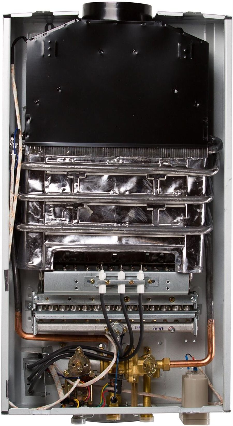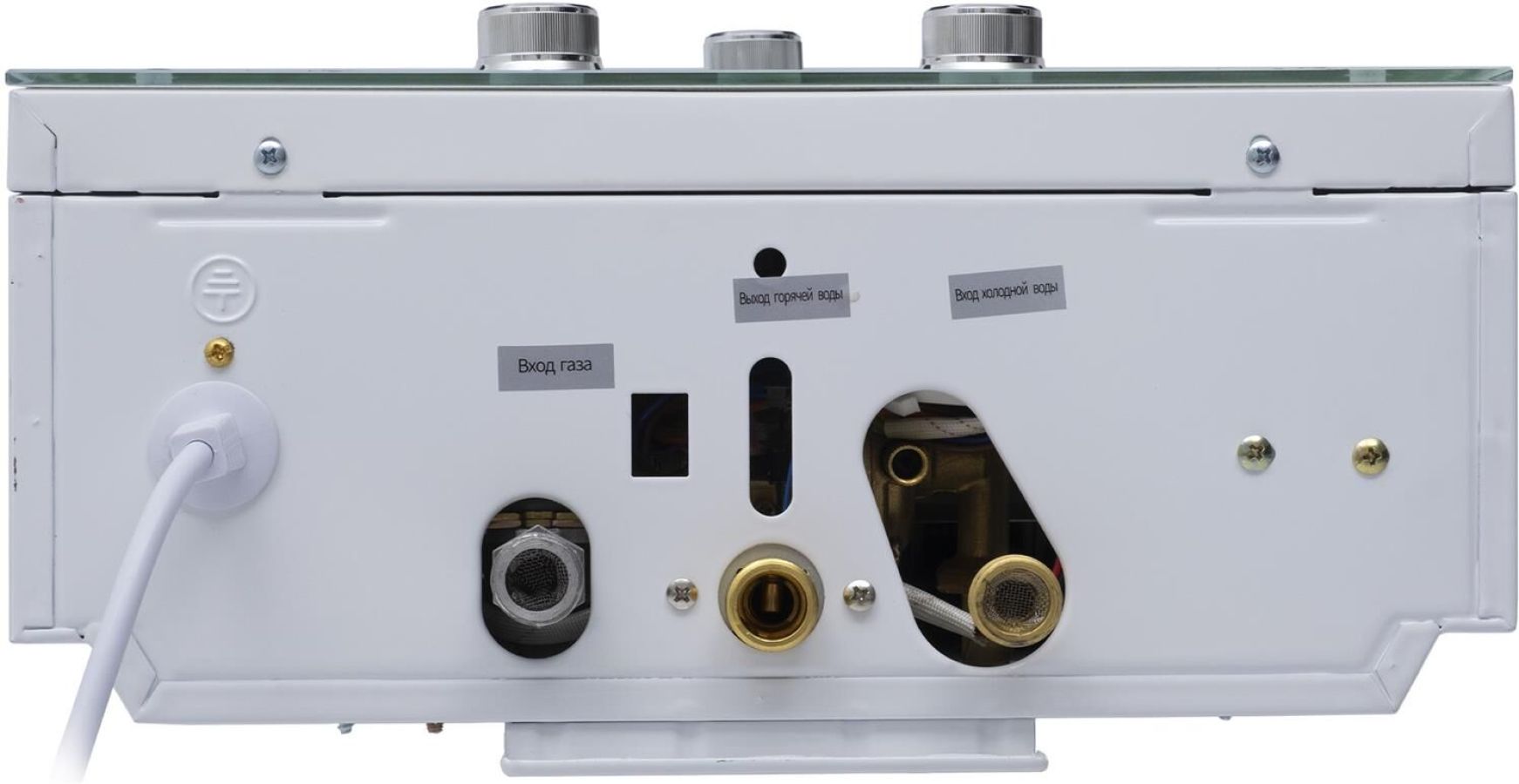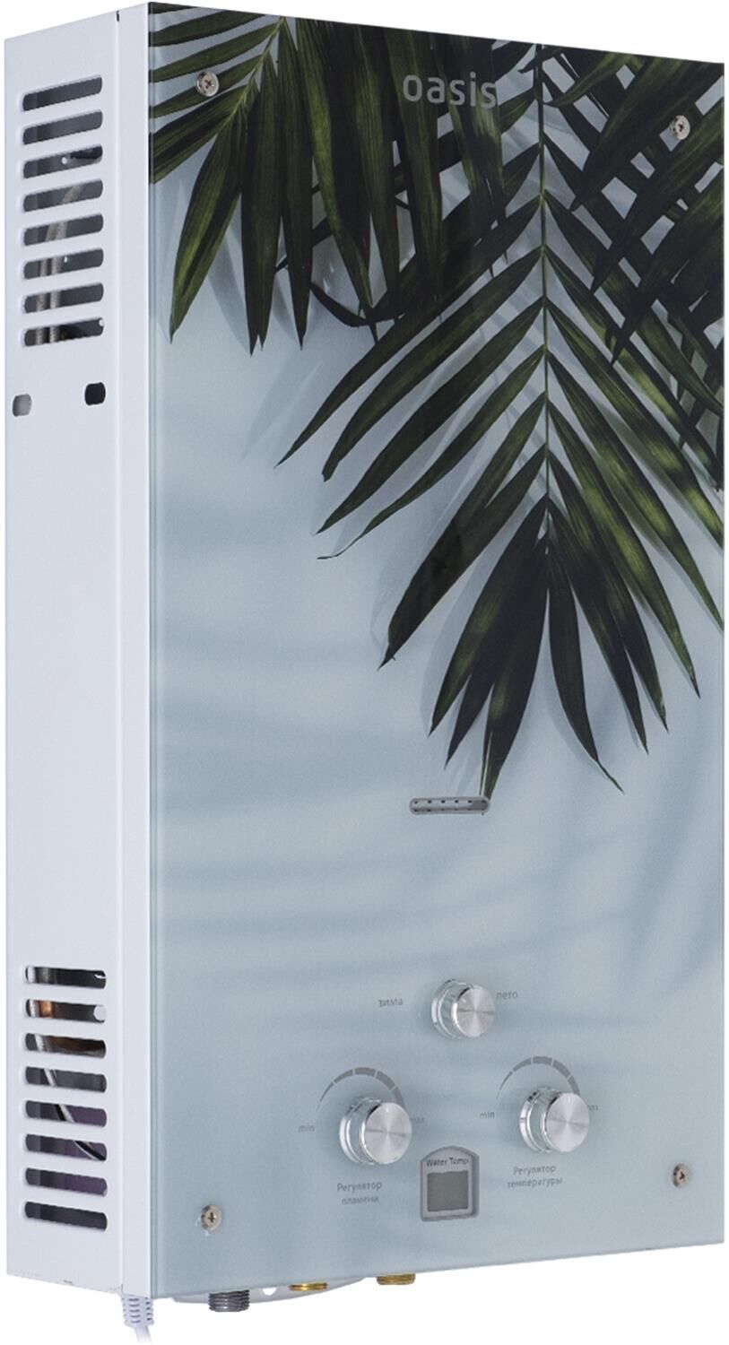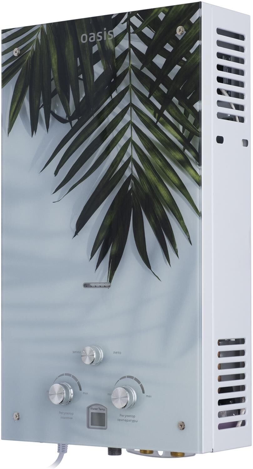 005 Газовый проточный водонагреватель"Oasis" серия Glass 20 LG; Тип газа Природный газ; Номинальное давление газа, Па 1300; Номинальный расход газа м³/час 2; Номинальная тепловая мощность, кВт 20; Номинальная теплопроизводительность, кВт 18; Давление воды, МПа 0,02-0,7; Номинальная емкость при нагреве на ΔТ =25°С, л/мин 10; Зажигание Автоматическое электронное; Питание Постоянный ток, батарейки 3 В; Диаметр дымохода, мм 110; Габаритные размеры, мм (ВхШхГ] 590х340х145; Вес нетто, кг 9,2