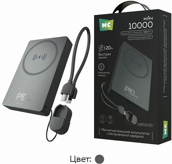 Внешний аккумулятор More Choice — идеальное решение для зарядки гаджетов в любых условиях. Он идеально подходит для поездок, активного отдыха и повседневного использования. Компактный и эргономичный, повербанк легко помещается в сумке или кармане. Оснащен технологией быстрой беспроводной зарядки, что экономит время и обеспечивает удобство в использовании. Имеет несколько выходных портов и кабель для зарядки в комплекте, что позволяет заряжать несколько устройств одновременно.