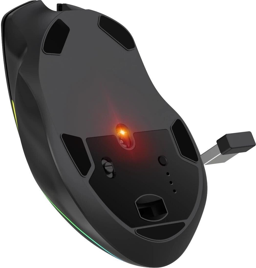 Эргономичная игровая мышь с изменяемой RGB подсветкой и кнопкой Fire для шутеров. В модели Immortal GM-421 предусмотрены 3 режима подключения: проводное, беспроводное по радиоканалу 2.4 Ггц, беспроводное подключение по Bluetooth. Также мышь имеет две боковые кнопки, тефлоновые ножки, а частота опроса в данной модели регулируется с помощью ПО.