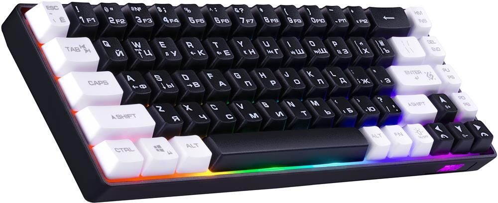 Ультракомпактная игровая клавиатура с кейкапами двух цветов и регулируемой радужной подсветкой. Основные особенности модели: блокировка клавиши Win, обмен функциями между клавишами WASD и стрелками, а также поддержка Anti Ghost для 19 клавиш.