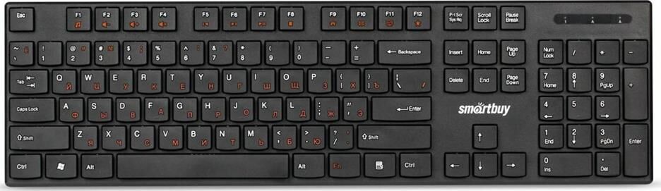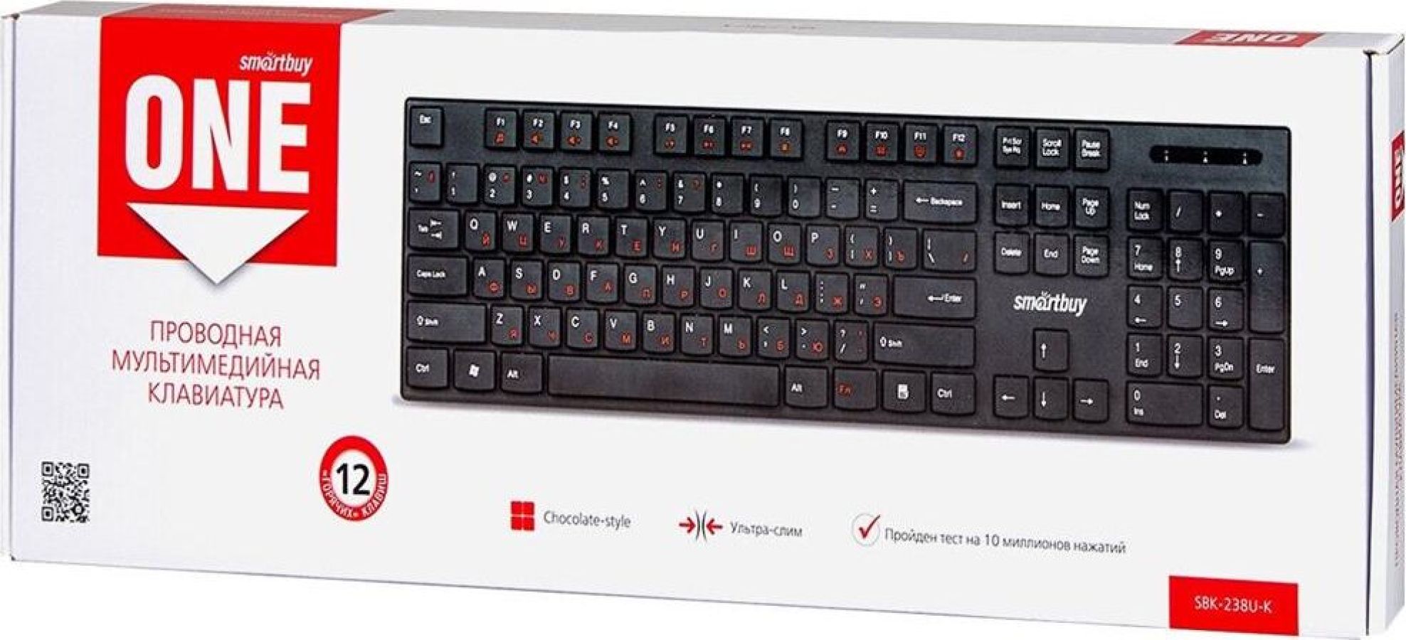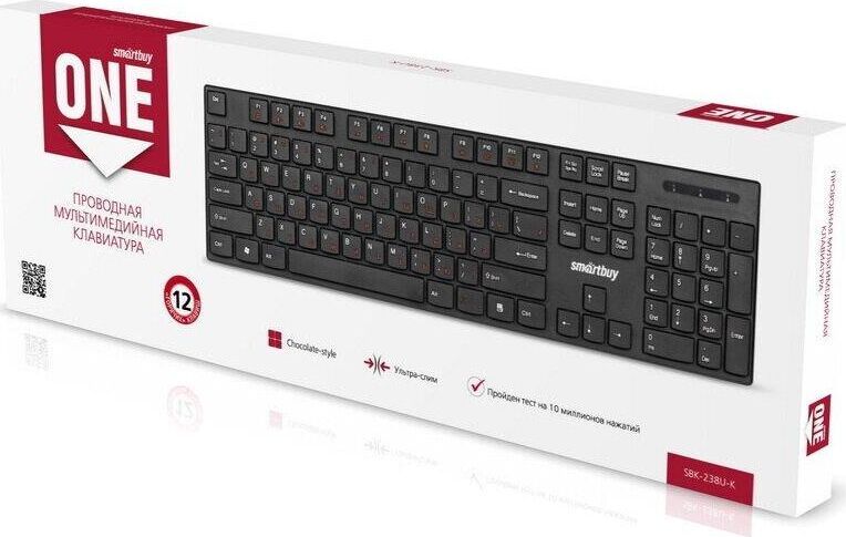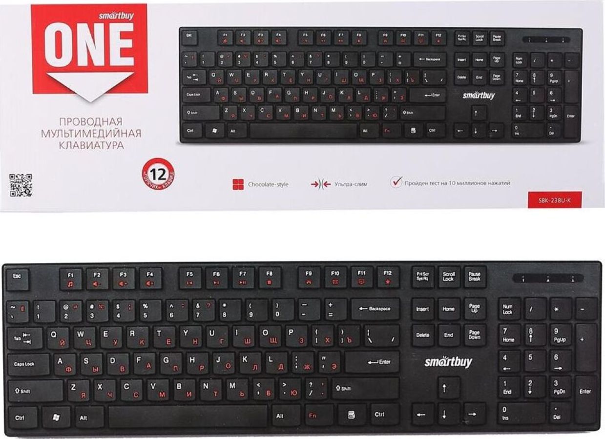 Комплектация: Клавиатура проводная SMARBUY ONE 238 USB мультимедийная черный , Подсветка: подсветка клавиш , Раскладка клавиатуры: русская