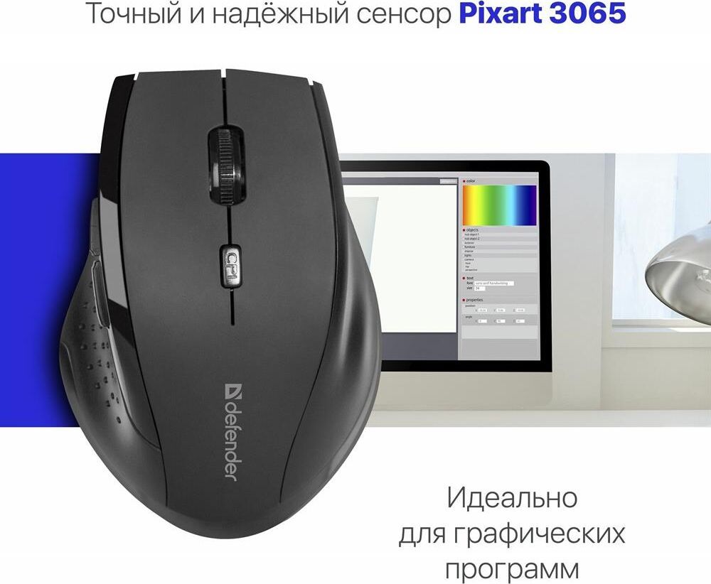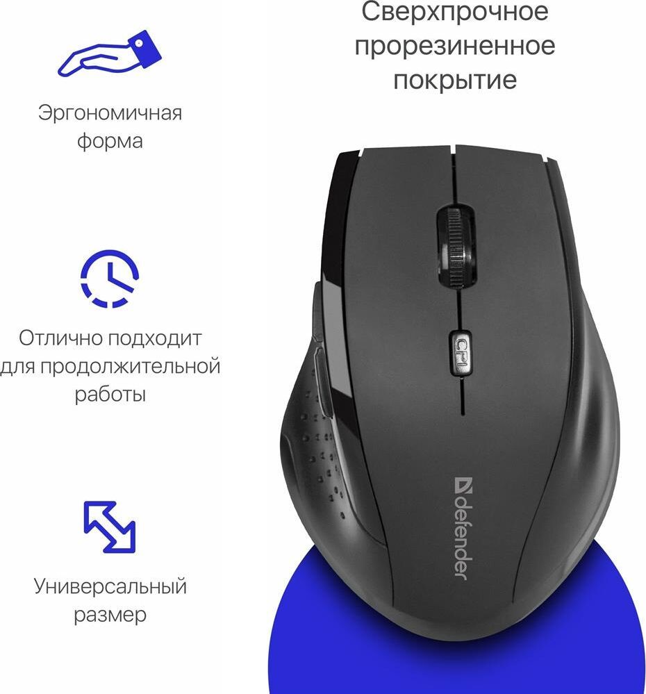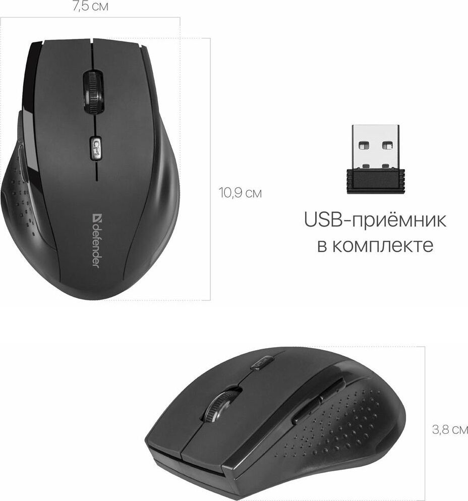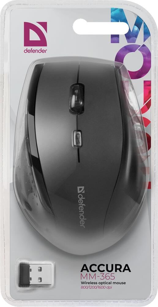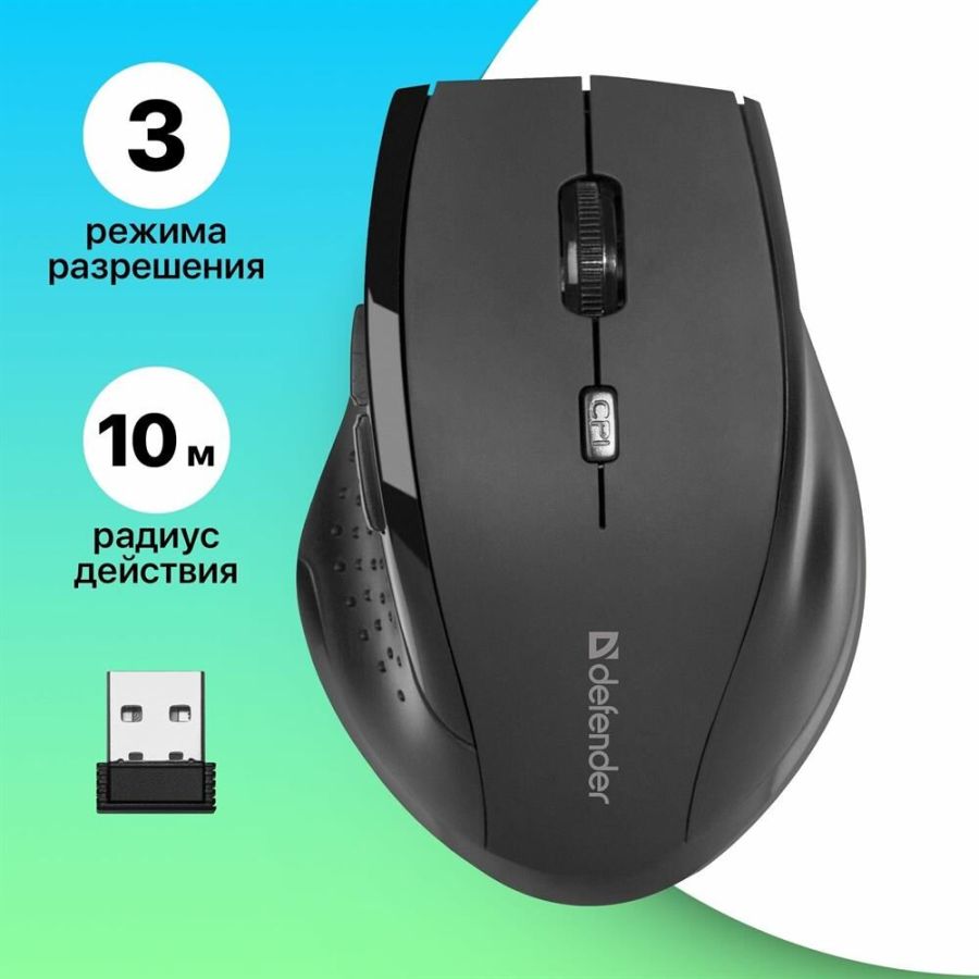 Мышь беспроводная оптическая, интерфейс USB, 5 клавиш+ колесо-кнопка, сменное разрешение сенсора 800/1200/1600 dpi, питание - 2 хAAA (в комплекте) цвет: черный.