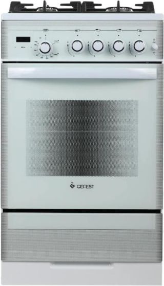 Габариты 850*600/*600. Вес, кг - 38. Объём духовки 64 л. Основные характеристики варочной поверхности: Электророзжиг, 4 газовые конфорки 0,9/1,70/1,70/2,5кВт. Основные характеристики духового шкафа: Газ-контроль, Терморегулятор, Механический таймер, Освещение, Комплектация: Большой противень, Решётка для жарки. Чугунная решётка. Стеклянная крышка рабочего стола. Хозяйственный отсек. Цвет - белый