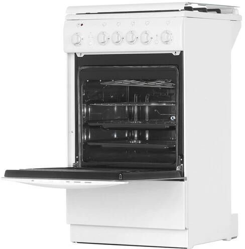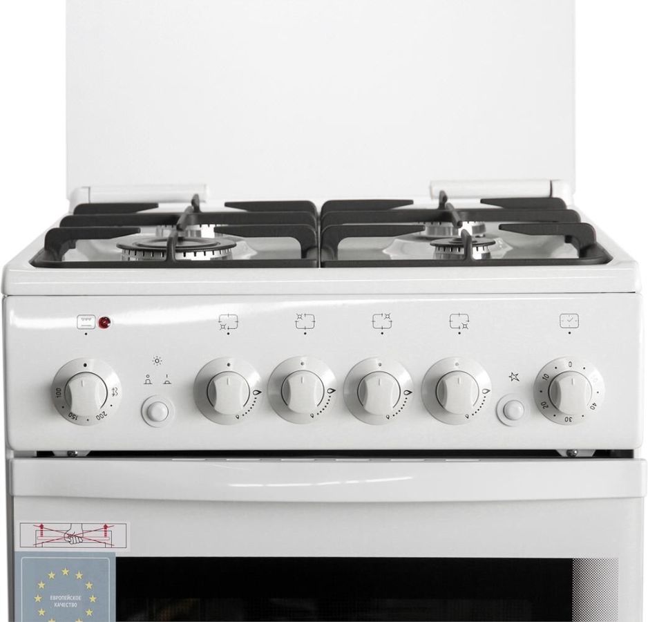 Габариты: 50x50x85 см Объём духовки 43 л. Вес, кг - 38. Варочная панель: газовая Духовка: электрическая Электрический поджиг: варочная поверхность Тип поджига: механический Возможности духовки: подсветка, ТЭН-гриль - 1,8 кВт, электрический, вертел в комплекте Очистка: традиционная Число стекол дверцы: два, 4 газовые конфорки 1,0/1,75/1,75/3,0 кВт, Терморегулятор, Освещение, Вертел, Механический таймер Комплектация: Большой противень, Малый противень, Решётка для жарки, Чугунная решётка, Стеклянная крышка рабочего стола, Хозяйственный отсек. Цвет - белый