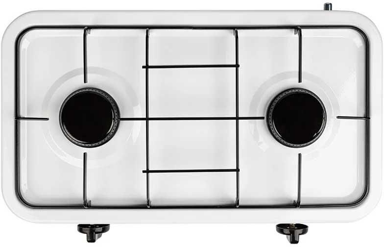 Мощность: 2*2200 Вт Количество конфорок: 2 Средний расход газа 320 гр/час Предохранительный клапан Алюминиевый корпус Тип топлива: сжиженный нефтяной газ Подключается исключительно к бытовому газовому баллону.