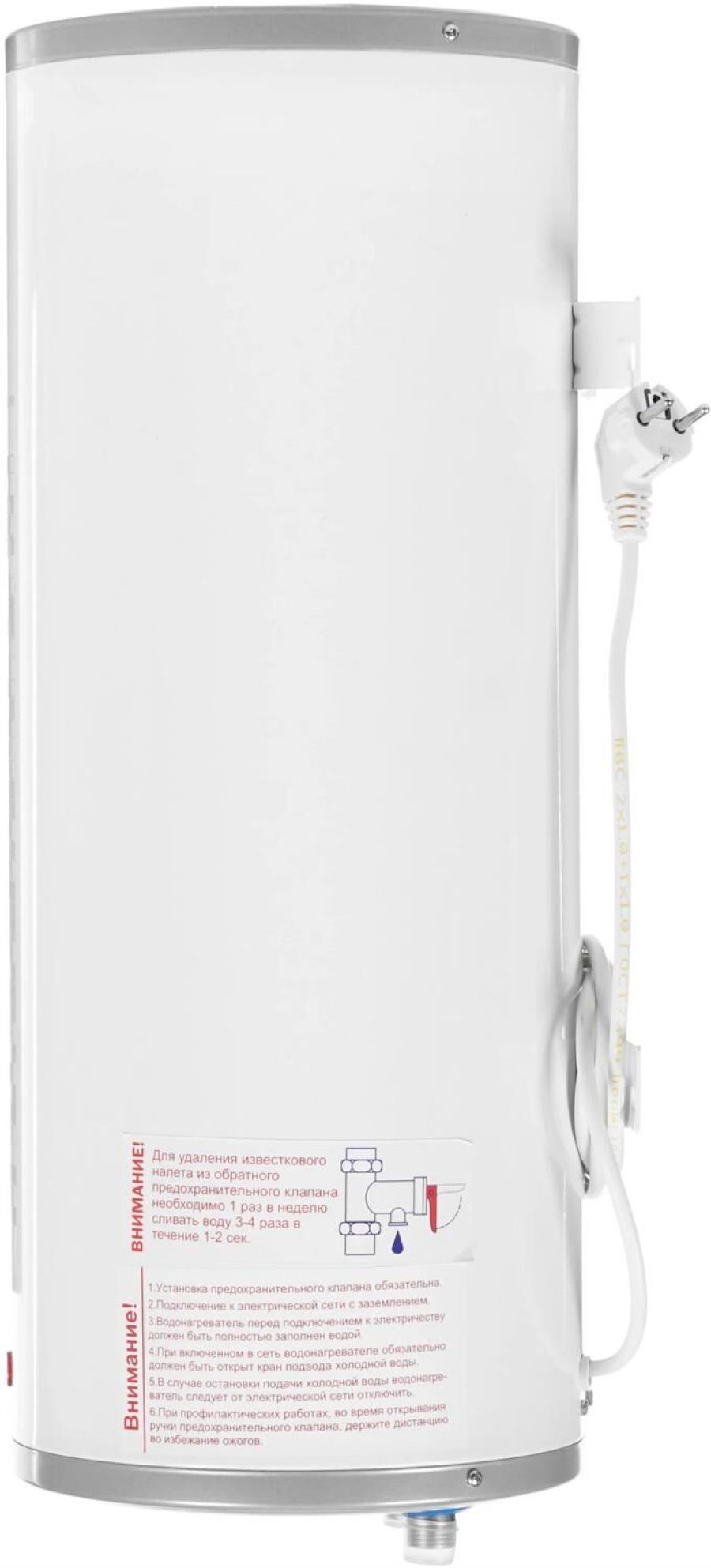 Система поддержания температуры. Световая индикация включения и подогрева. Максимально простая система управления терморегулятором. Система полной безопасности СПС безопасности. Антикоррозийный магниевый анод. Предохранительный клапан. Слой теплоизоляции, снижающий тепло- и энергопотери. Внутренний бак из высококачественной нержавеющей стали. Регулирование потребления электроэнергии. Комплектация: Электрический кабель с вилкой. Анкерные болты с гайкой. Предохранительный клапан. Техническое описание: Цвет - белый. Мощность - 1,5 кВт. Объём, л - 15. Размеры, мм - высота/диаметр – 630/240. Вес, кг - 7.
