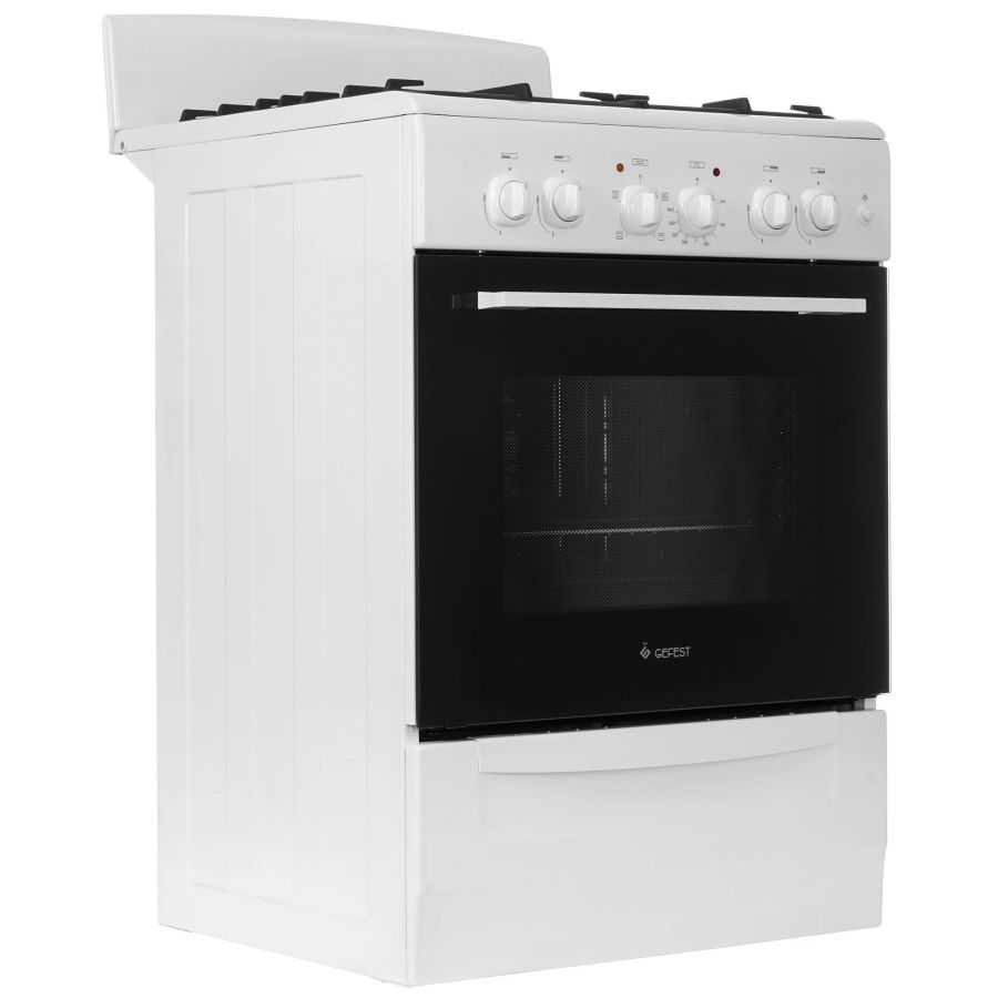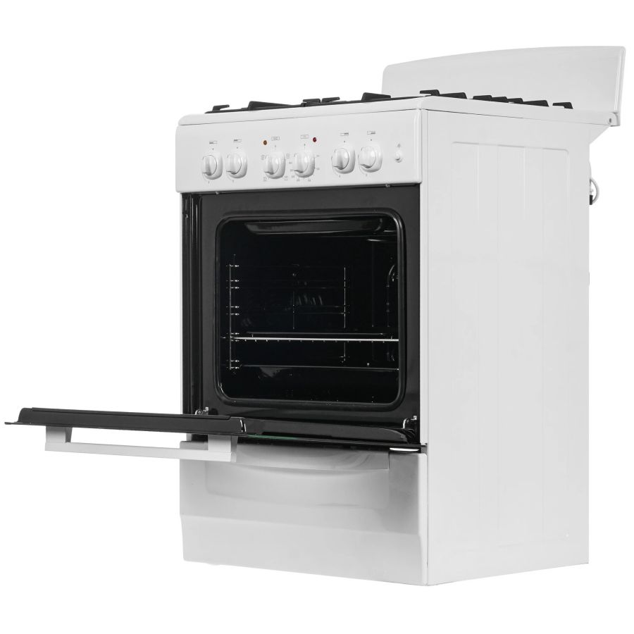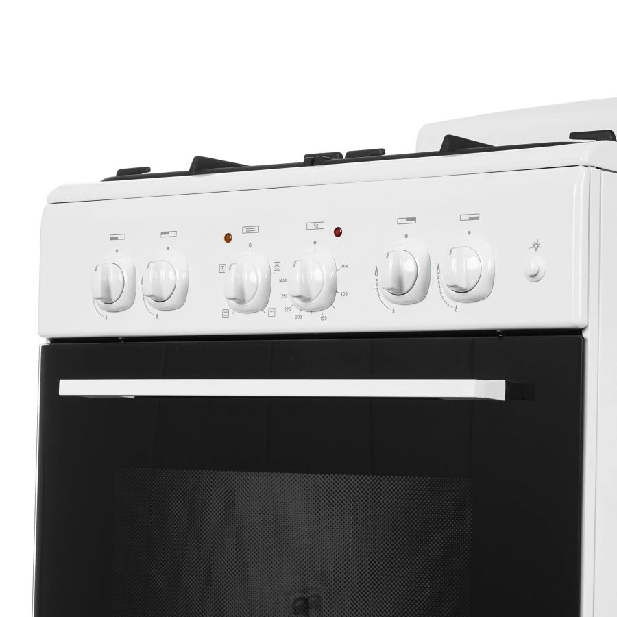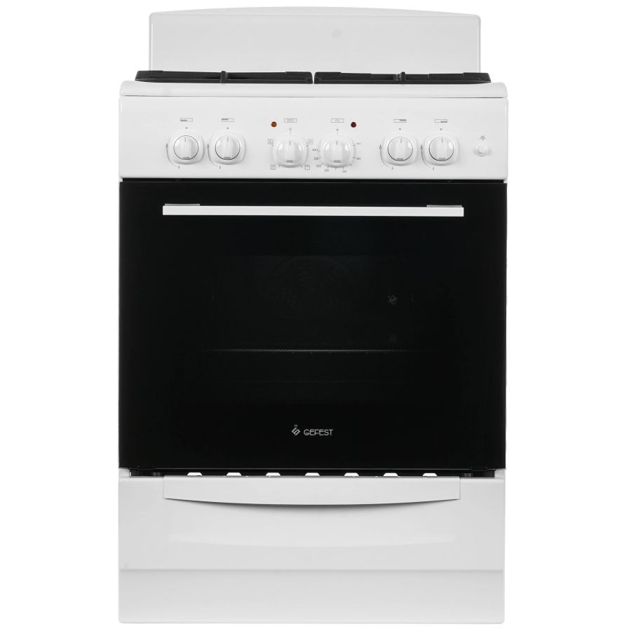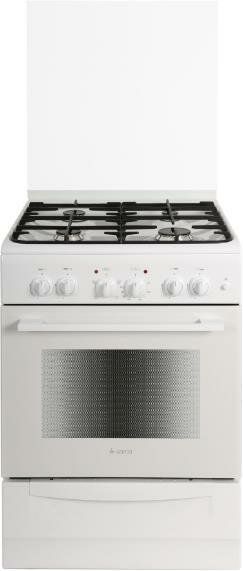 ШхГхВ, см: 60x60.5x85; Цвет: белый; Дизайн: классический; Ширина, см: 60; Фасад: эмалированный; Объём духовки, л: 55; Варочная панель: газовая; Решетка варочной панели: чугунная эмалированная; Крышка стола: щиток, стеклянный; Управление варочной панели: кран; Присоединительная резьба газопровода: G 1/2; Номинальная потребляемая мощность электроэнергии, кВт: 1,84-2,02; Тип подключения: газоэлектрический; Количество газовых горелок варочной панели: 4; Газ-контроль горелок стола; Электророзжиг горелок стола: кнопка розжига на панели; Тип направляющих духового шкафа: Съемные проволочные; Количество стекол в дверце духового шкафа: 2; Тип духового шкафа: Электрический: Горелка гриль: электрическая; Ящик для посуды и принадлежностей: выдвижной; Конвекция; Подсветка духовки: одинарная