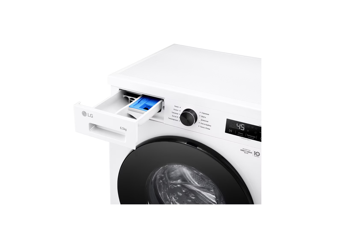С фронтальной загрузкой и вместимостью до 6,5 кг белья она идеально подойдёт для семьи. Благодаря инверторному мотору с прямым приводом Direct Drive машина работает тихо и эффективно, снижая износ деталей и энергопотребление.