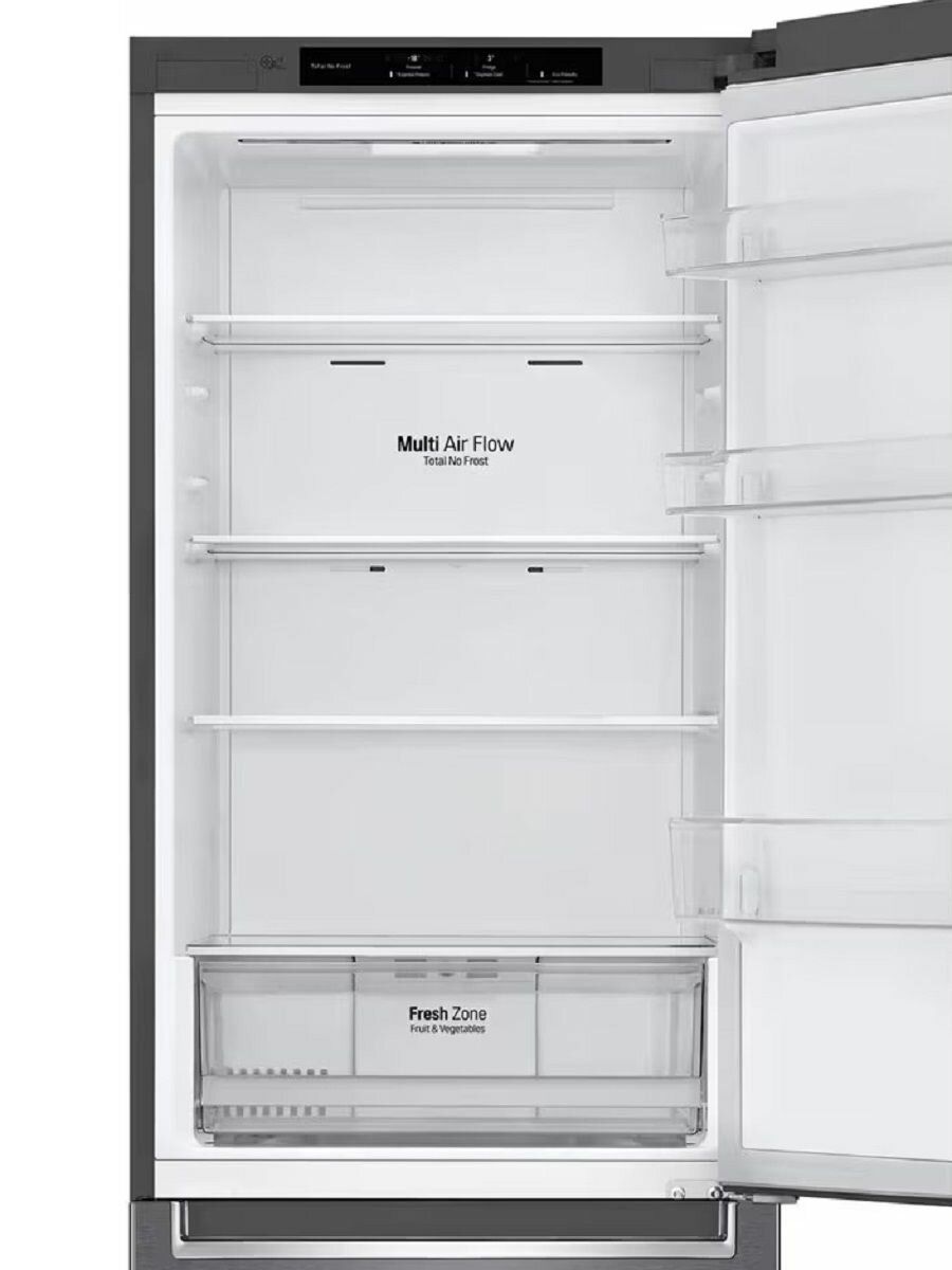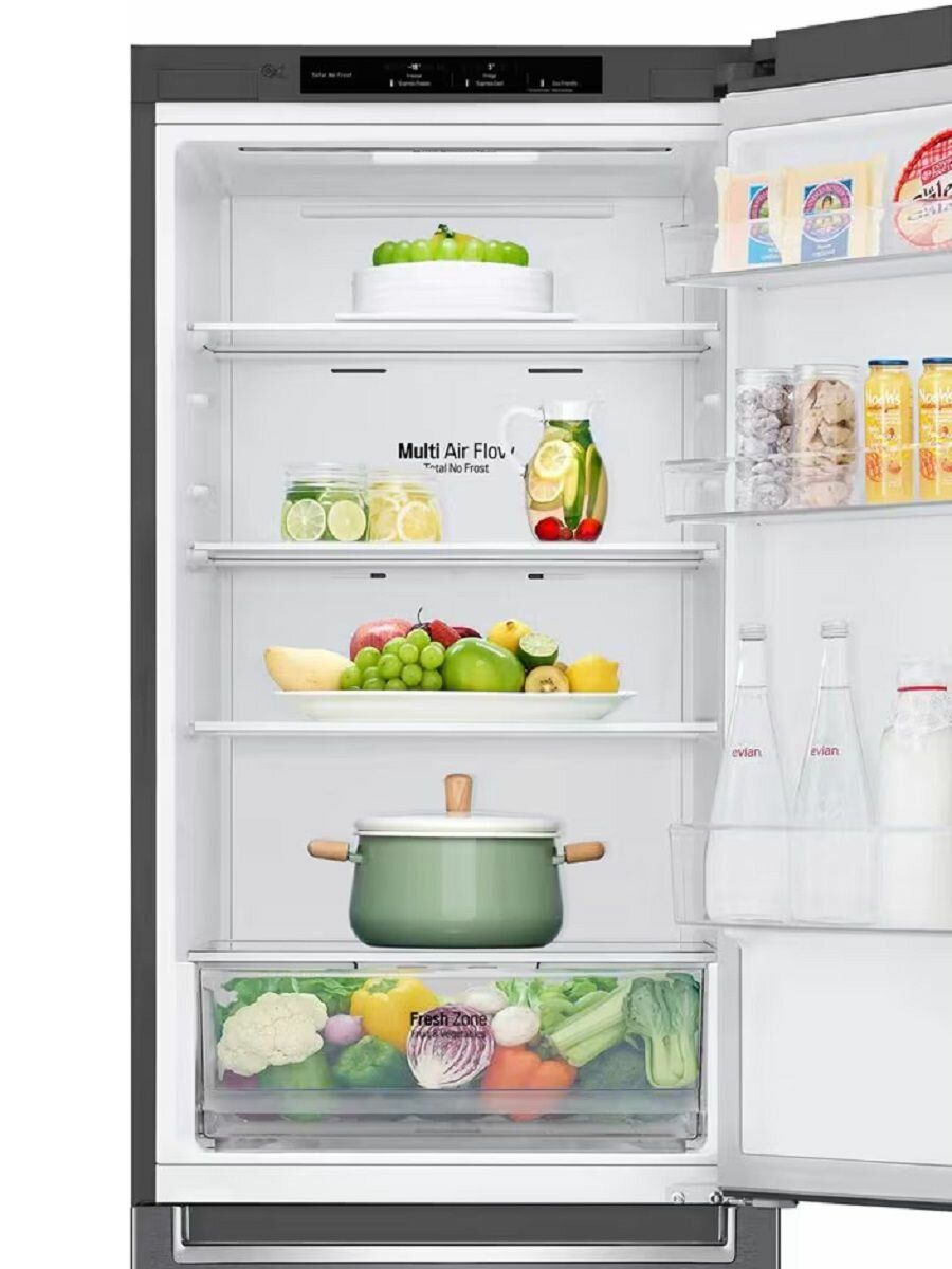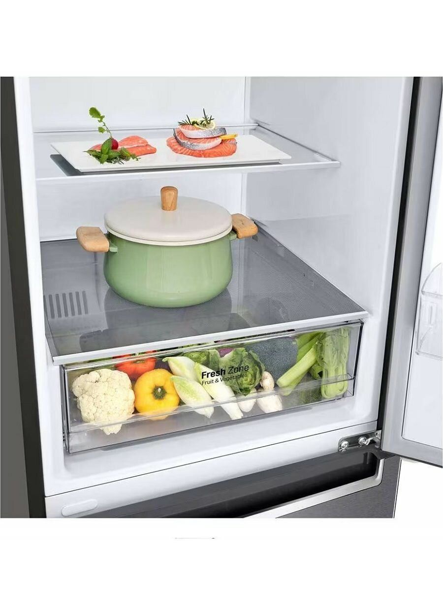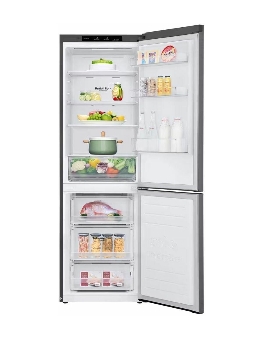 Холодильник LG GC-B459SLCL - это двухкамерное устройство с общим полезным объемом 341 литр. Он оснащен технологией DoorCooling+, которая обеспечивает равномерное распределение холодного воздуха, что позволяет продуктам оставаться свежими дольше даже на верхних полках.
