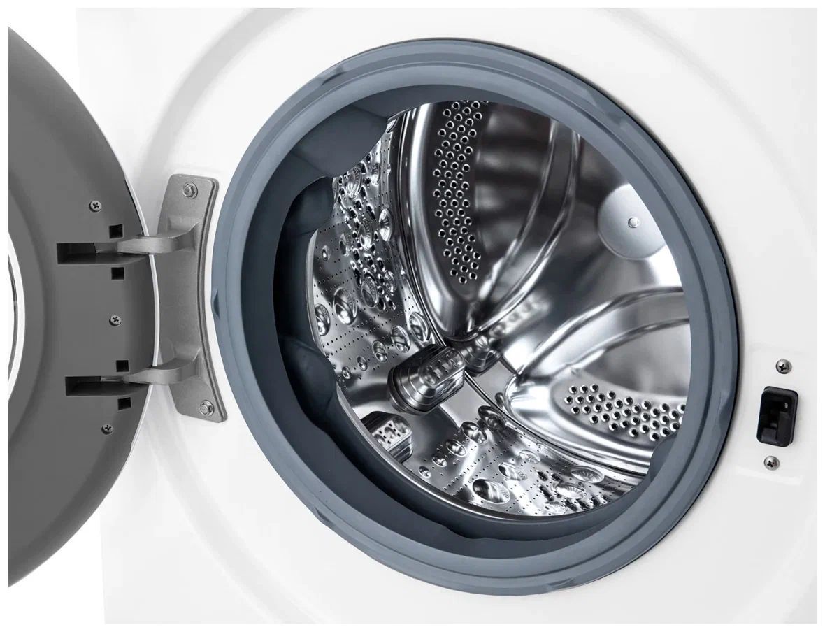 Стиральная машина LG F2V3GS3W сочетает удобство использования и очень высокий уровень качества стирки. Предусмотрена интеллектуальная система определения типа материи, которая базируется на 20000 сочетаниях тканей. Машина анализирует поступивший материал и автоматически подбирает оптимальный алгоритм стирки. Стоит отметить и функцию пара, помогающую удалить до 99.9 % вирусов, бактерий и аллергенов. Безопасность эксплуатации машины способна гарантировать функция блокировки от детей.Стиральная машина LG F2V3GS3W имеет усовершенствованную систему амортизации, которая позволяет снизить уровень вибрации во время стирки. Уровень шума при стирке не превышает 54 дБ. Максимальный уровень шума при отжиме равен 70 дБ. Модель имеет фронтальный тип загрузки. Угол открытия дверцы может достигать 150°. Диаметр загрузочного люка – 30 см. Максимальная загрузка машины – 8.5 кг.Двигатель стиральной машины – инверторный. Такие электромоторы отличаются сочетанием низкого уровня шума, минимального энергопотребления и долгого срока