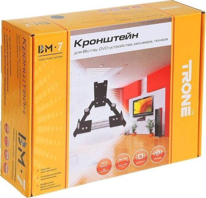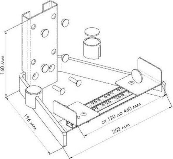 Универсальный кронштейн для DVD и AV ресиверов с раздвижной (универсальной) площадкой от 120 до 460 мм. Вылет от стены 195 мм.