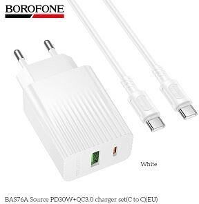 Универсальное сетевое зарядное устройство Borofone BAS74A для электронной техники с двумя портами USB-A и Type-C подходит для быстрой зарядки одновременно двух устройств. В комплекте поставляется зарядный кабель Type-C - Type-C длиной 1м